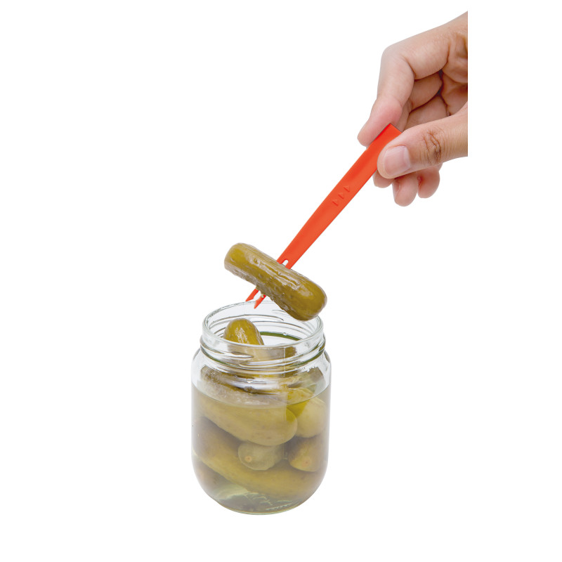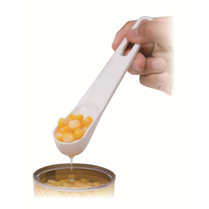 耐热温度:140℃ 玉米和豆子等罐装或瓶装的食物,长漏勺方便捞出。 被设置在柄上的红色部分可以作食物叉使用。 |