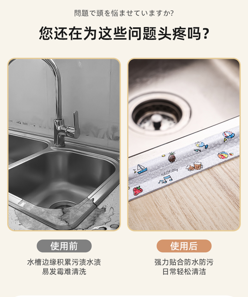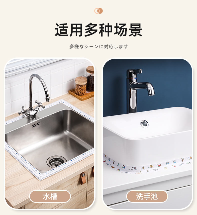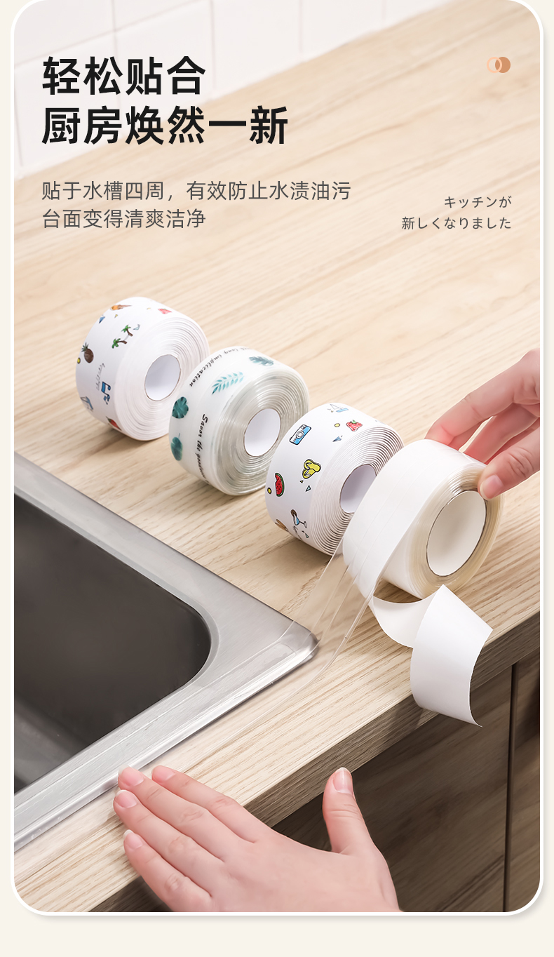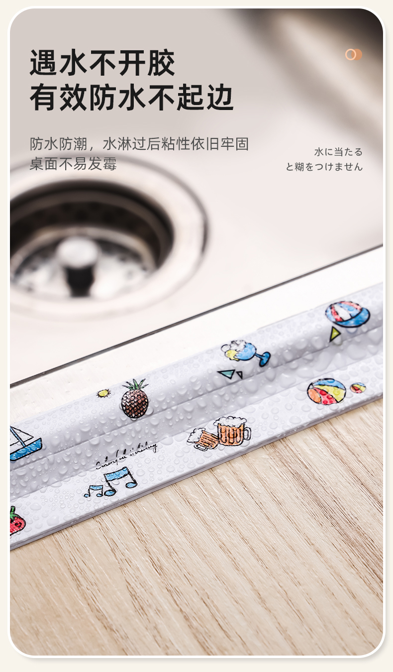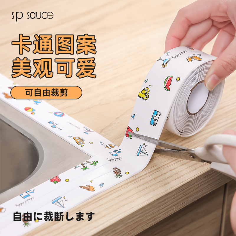 PVC印花款防水防霉贴 厨房水槽水池防水贴卫生间浴室防潮防霉马桶墙角线胶自粘美缝贴