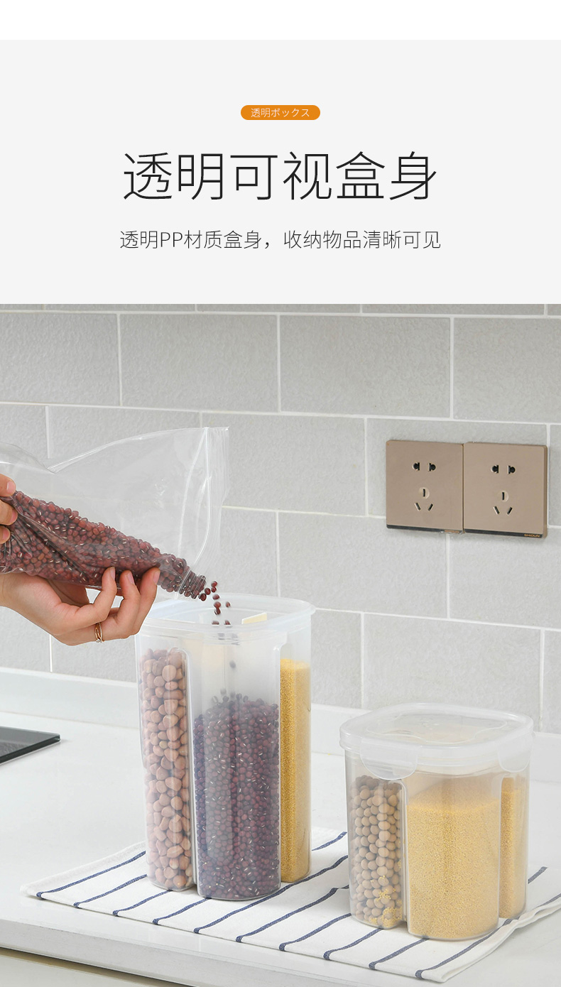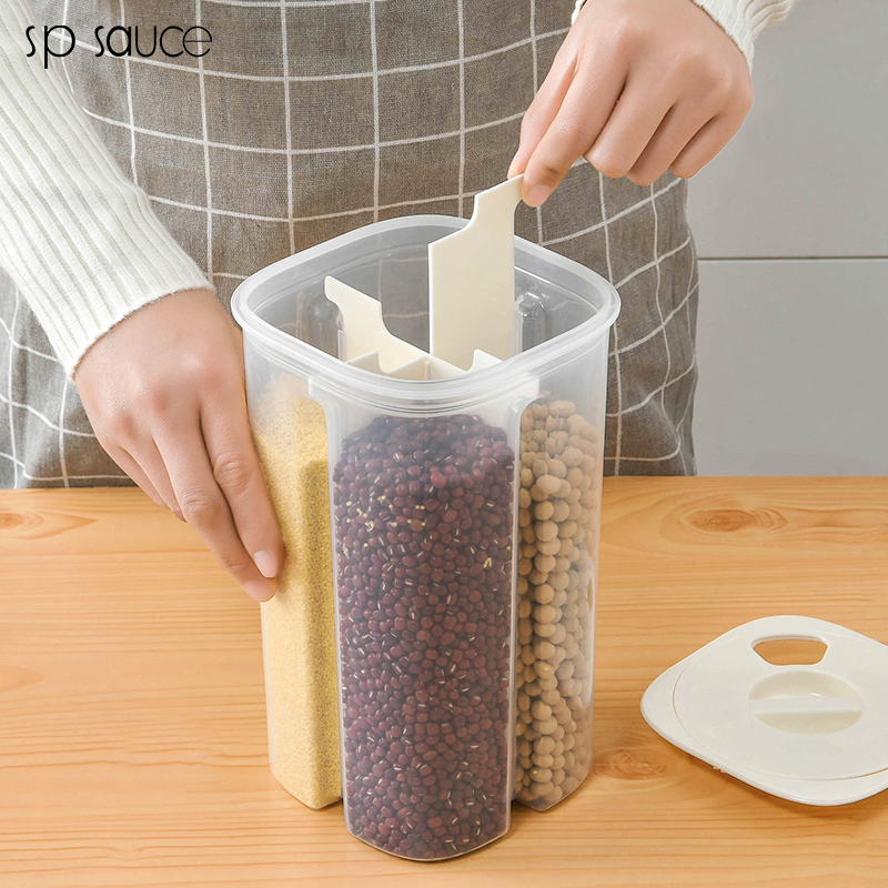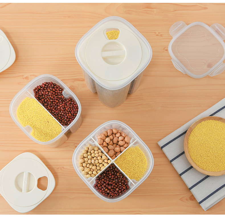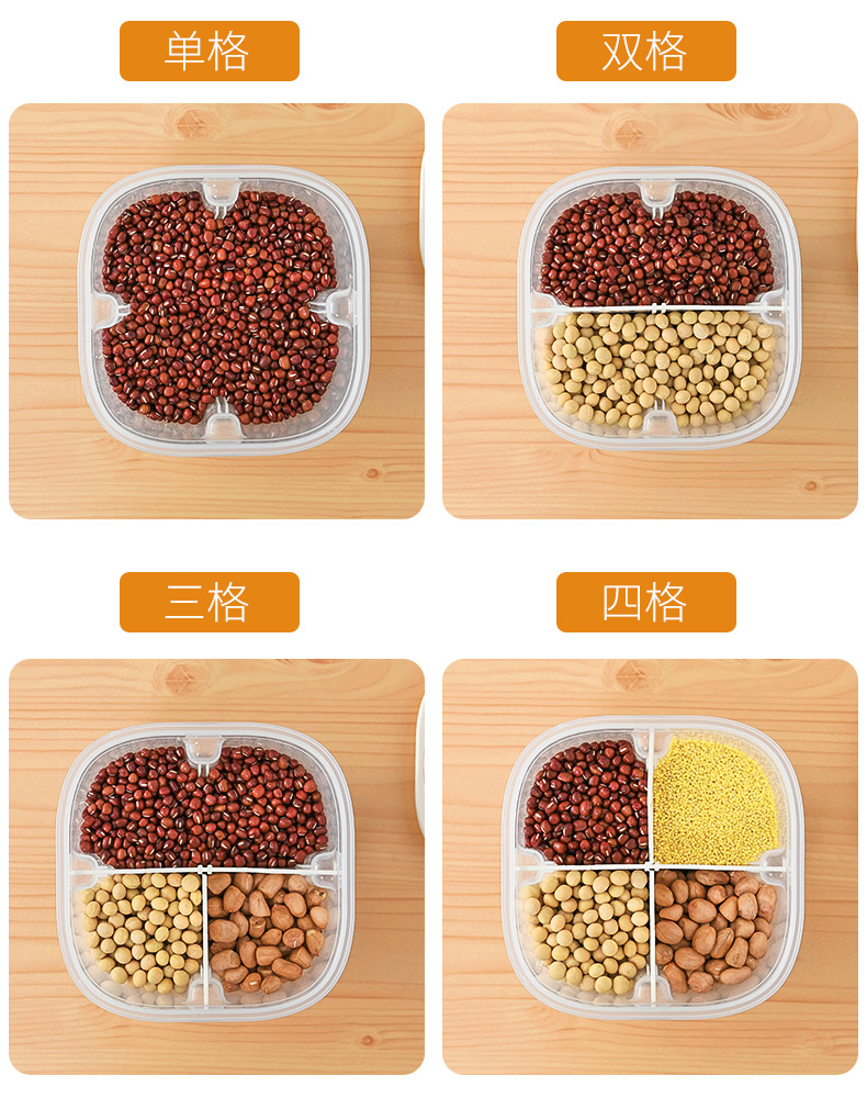 D 方形4分格杂粮罐大号 五谷杂粮储物罐四分格密封罐厨房食品粗粮米桶家用塑料豆子收纳盒大号