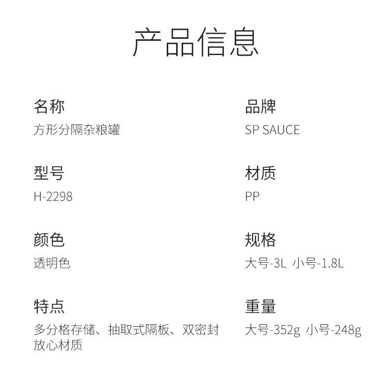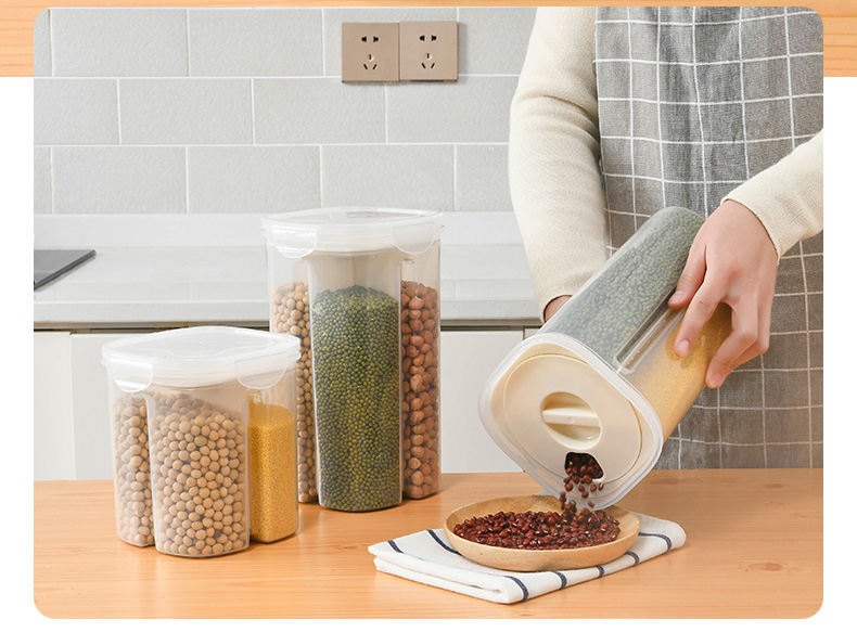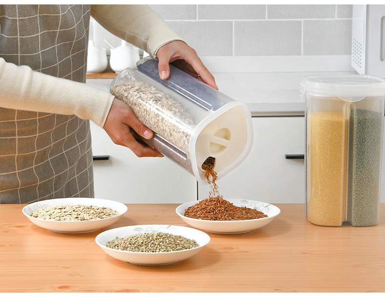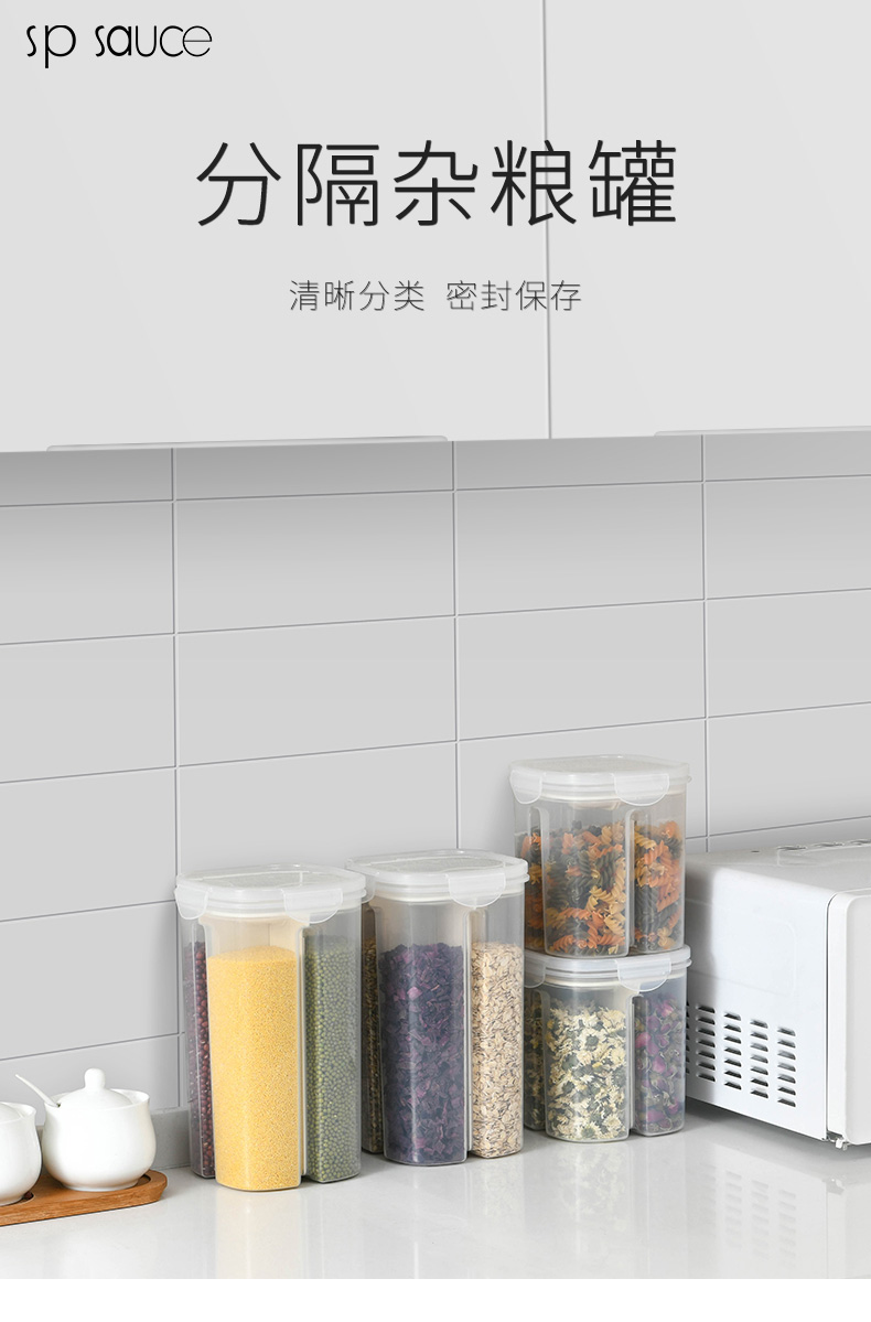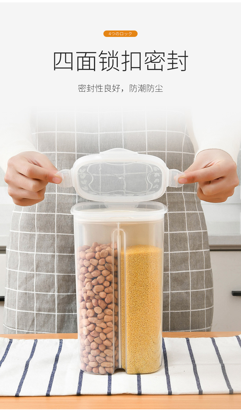 D 方形4分格杂粮罐大号 五谷杂粮储物罐四分格密封罐厨房食品粗粮米桶家用塑料豆子收纳盒大号
