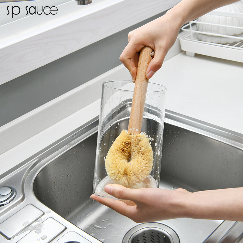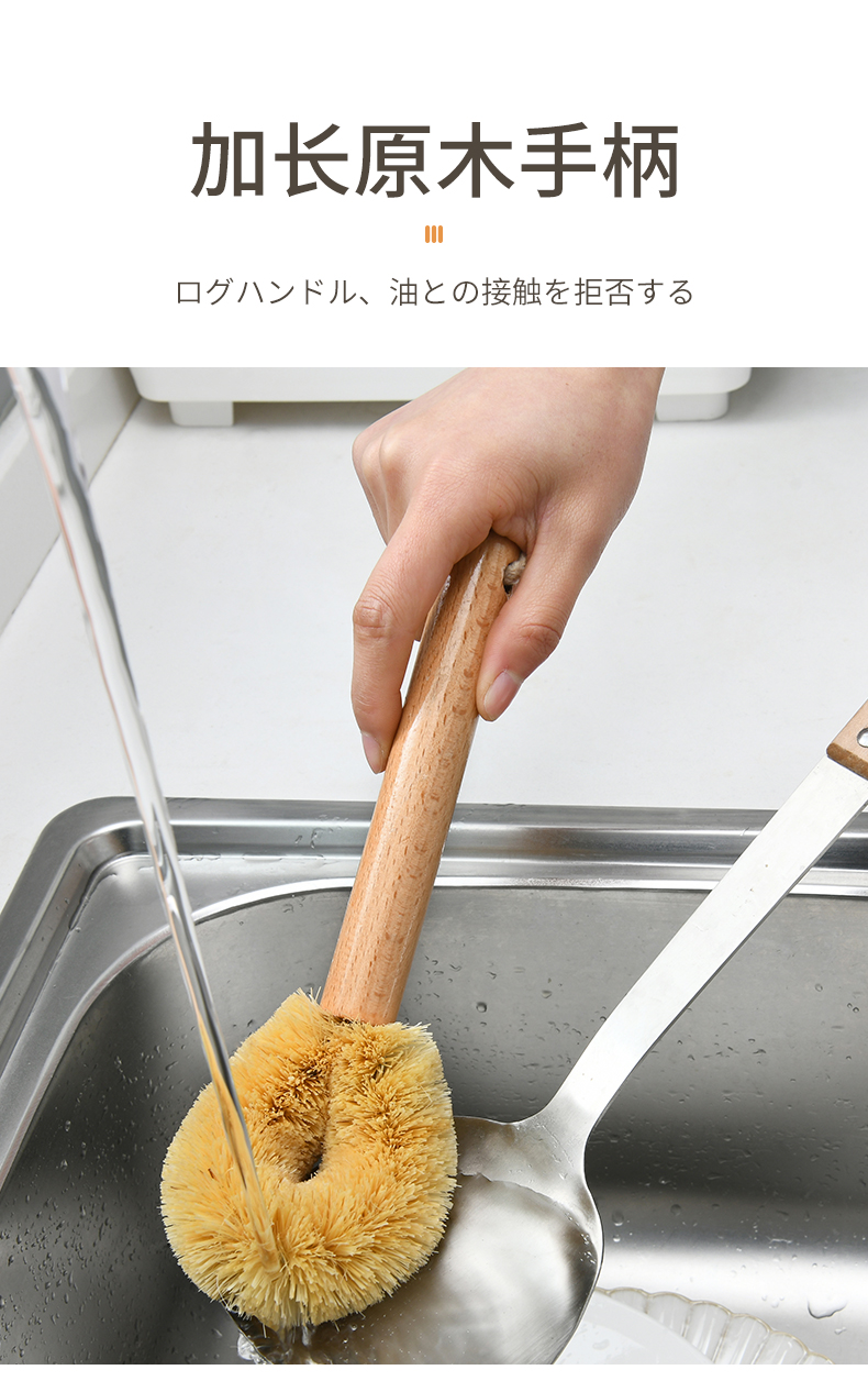 天然椰棕锅刷 弯曲刷头 洗锅涮子厨房椰棕硬毛去污不易沾油长柄锅刷洗剐刷杯子