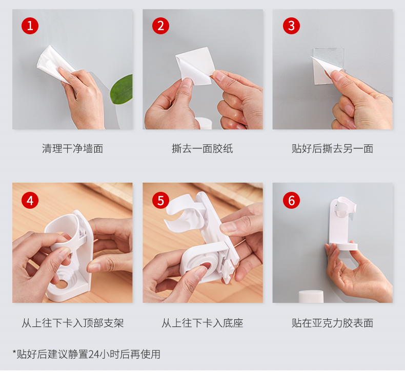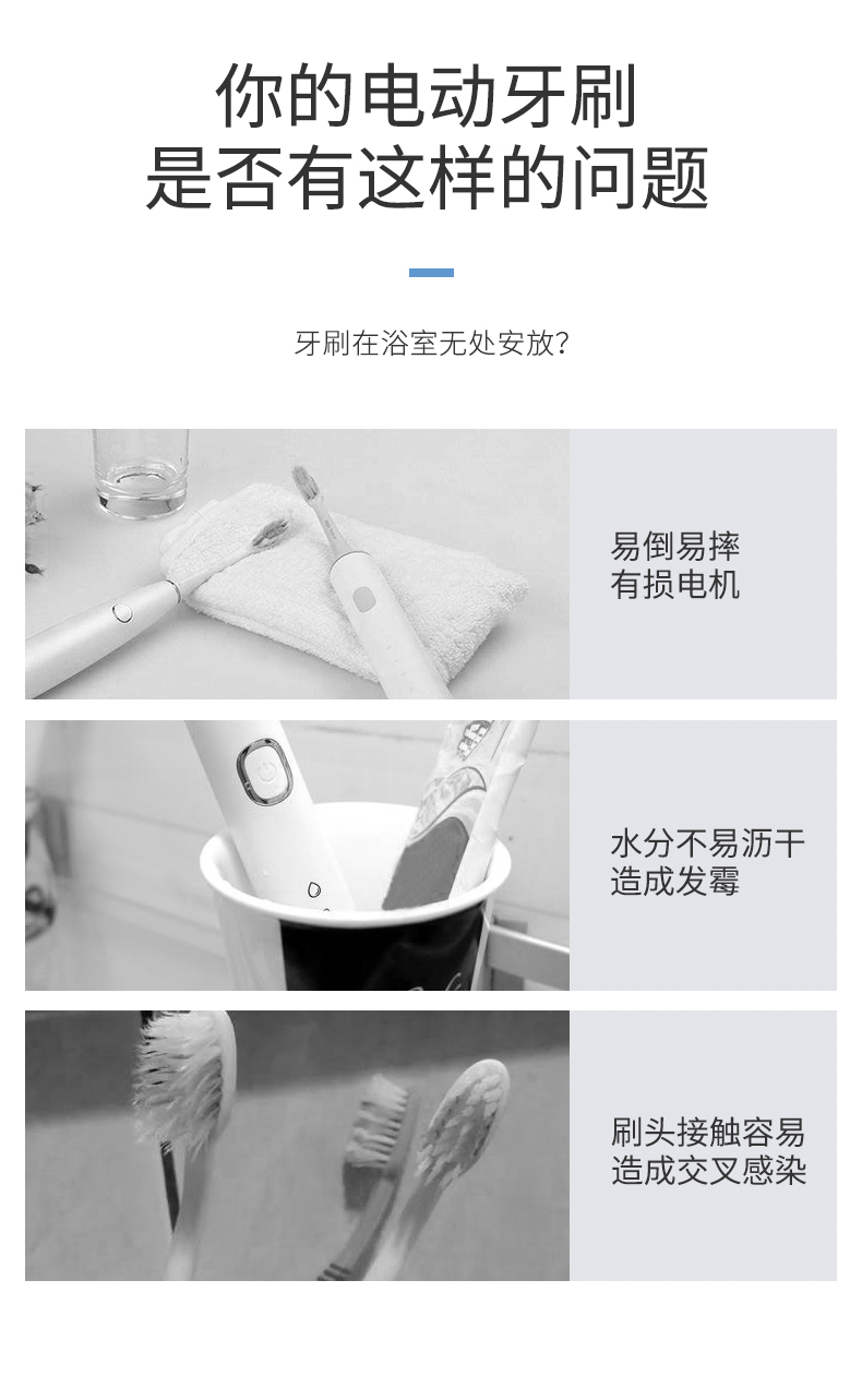D 电动牙刷架 电动牙刷支架通用壁挂牙刷架吸壁式收纳放座托粘贴免打孔置免钉胶