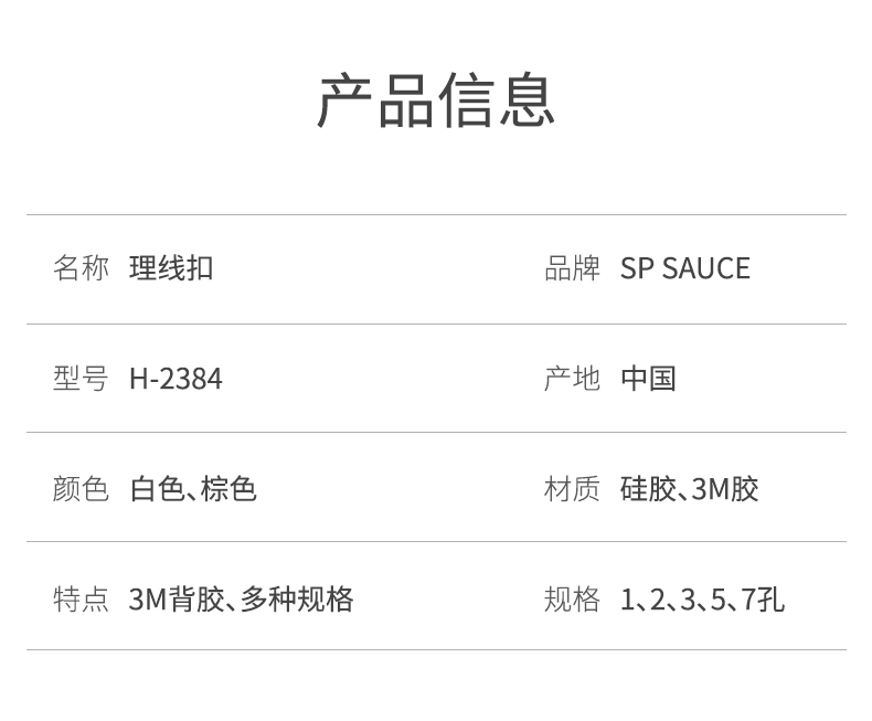D 理线扣5孔 线收纳理线器办公桌面整理线路固定夹自粘免钉墙面贴网线电线卡扣