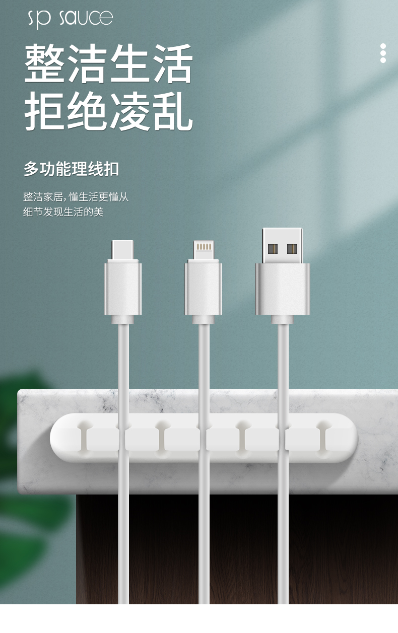 理线扣2孔 线收纳理线器办公桌面整理线路固定夹自粘免钉墙面贴网线电线卡扣