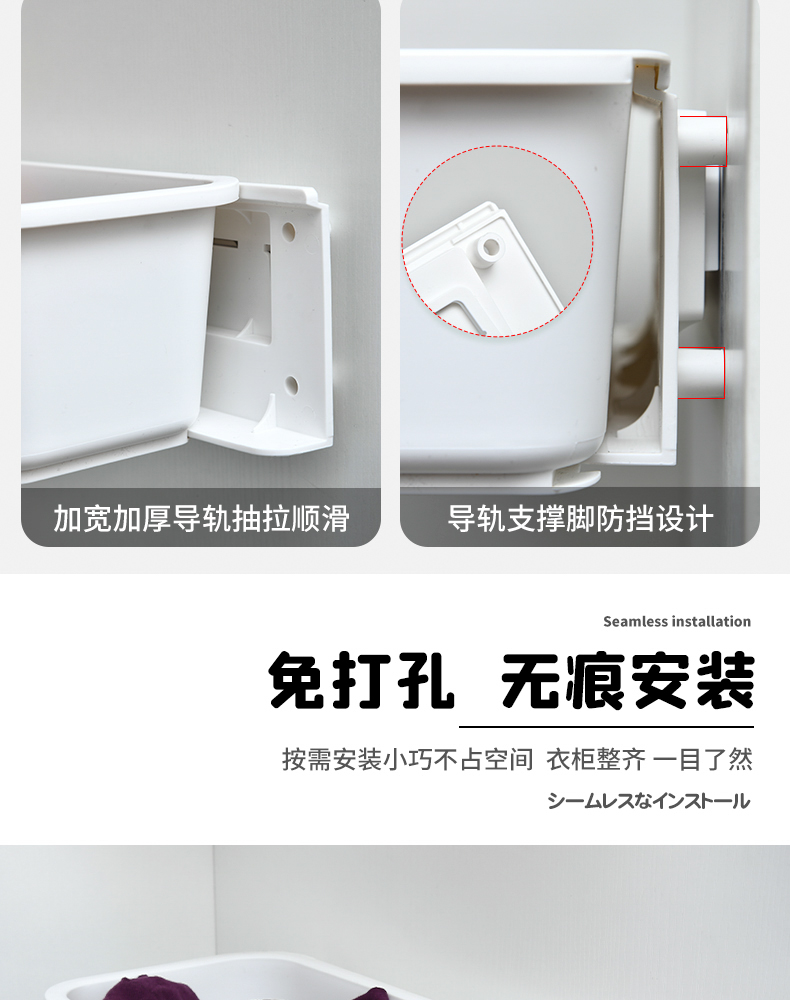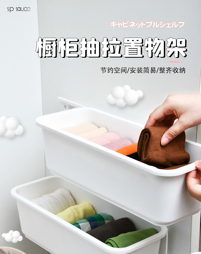 橱柜推拉置物架 厨房抽屉式置物架免钉调料架子厨房收纳架免打孔拉屉挂架