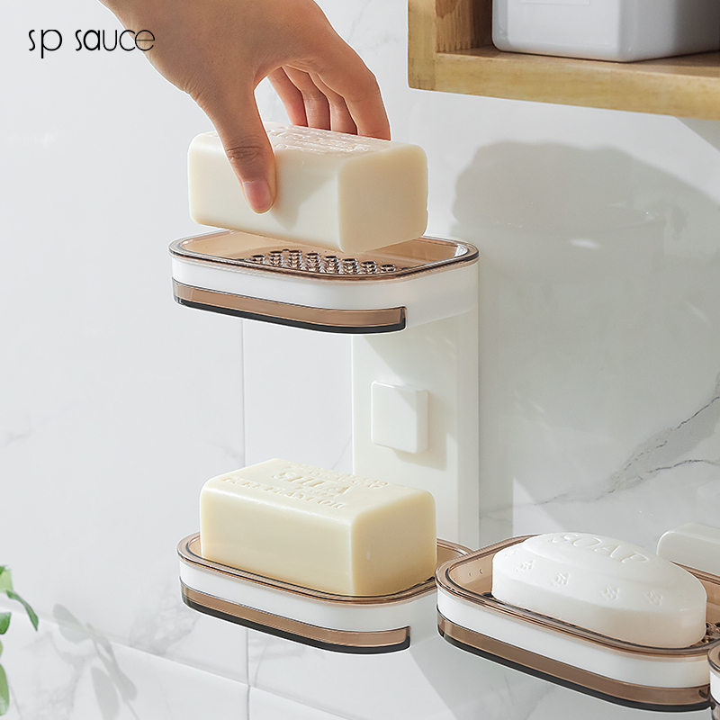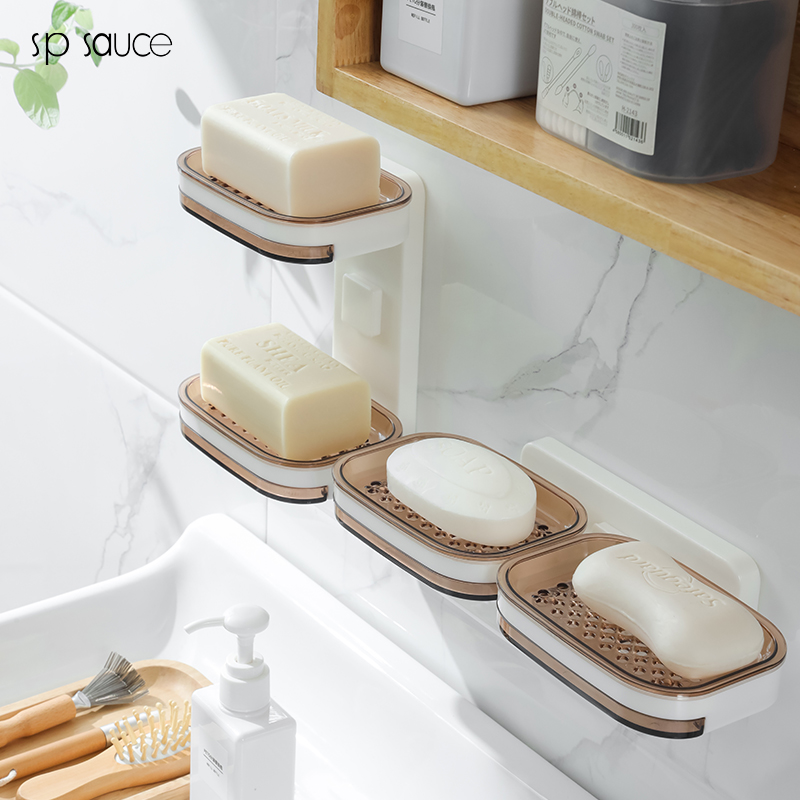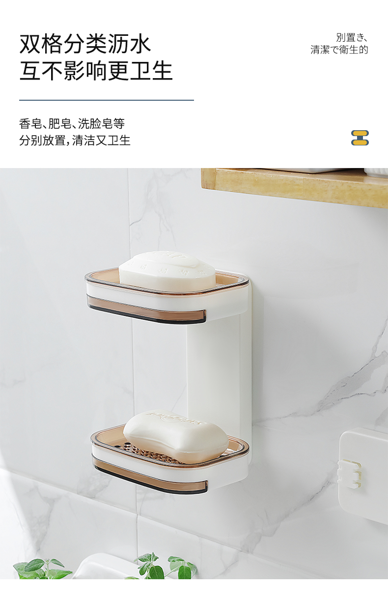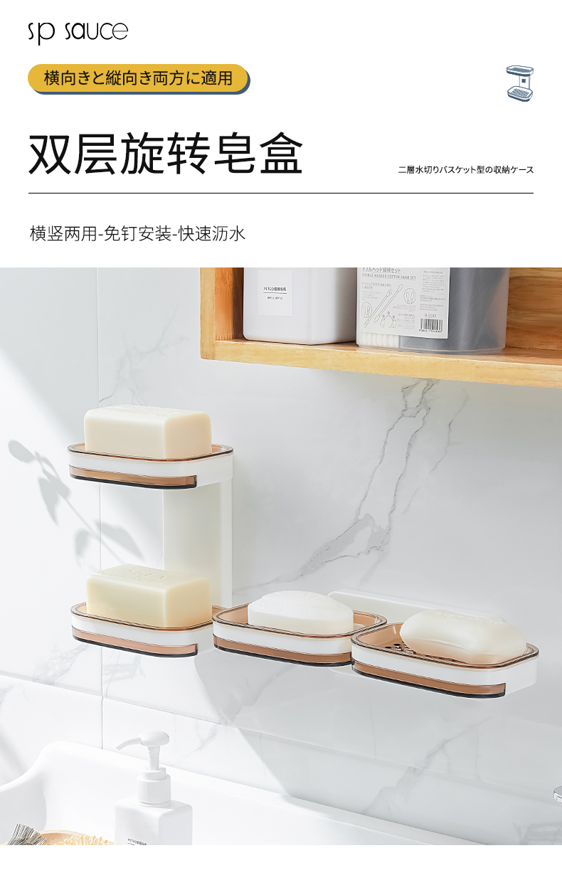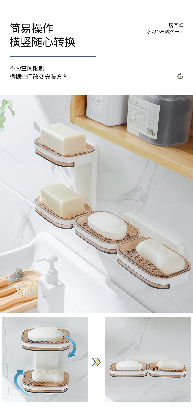 D双层旋转沥水肥皂盒 旋转创意沥水双层肥皂架卫生间壁挂肥皂盒免打孔浴室香皂盒架
