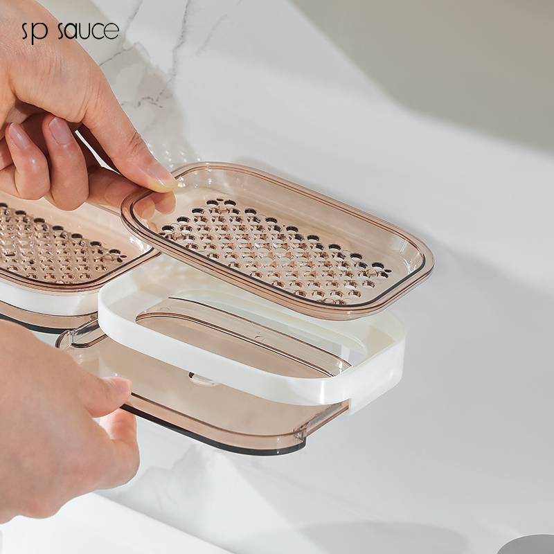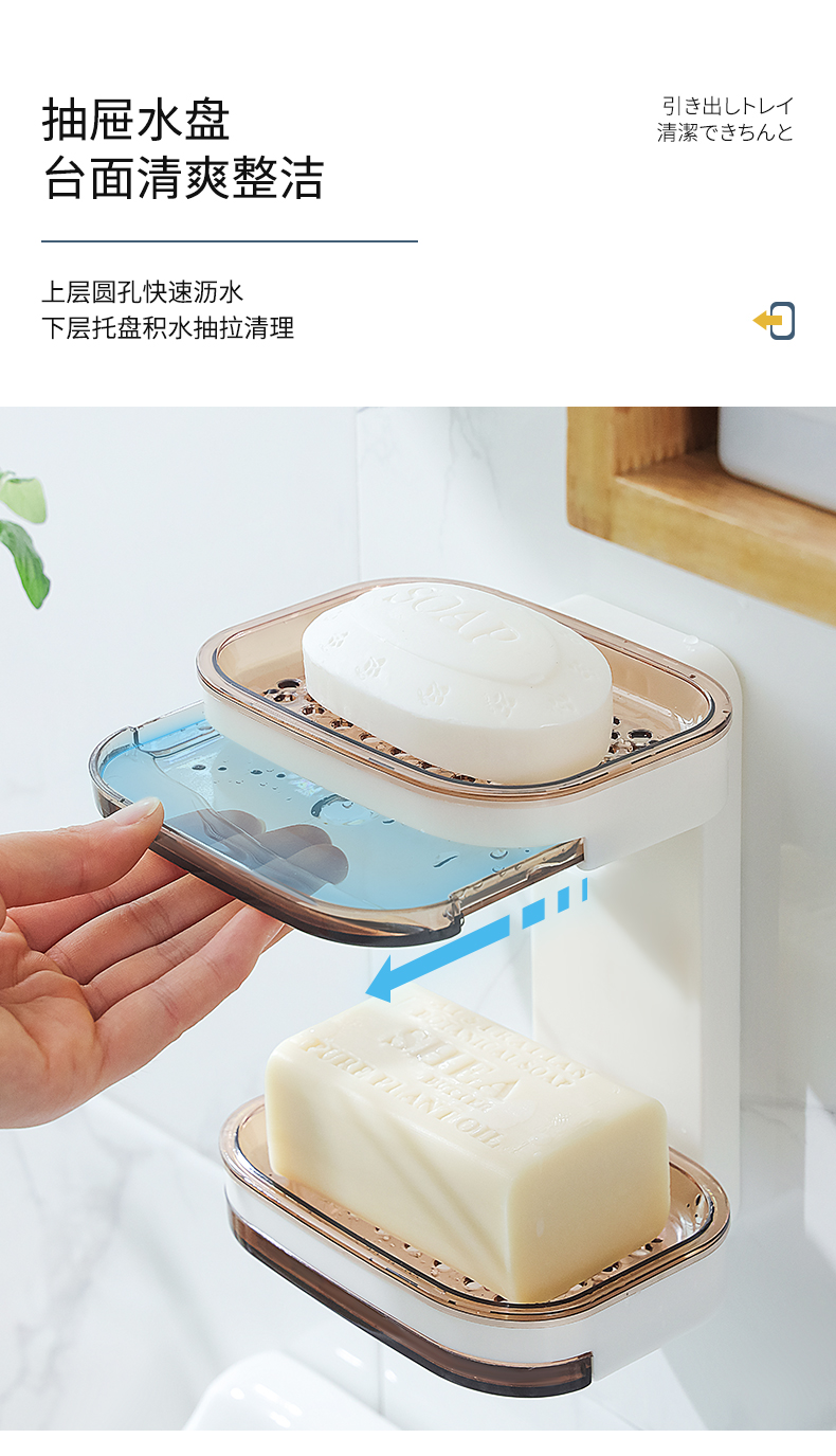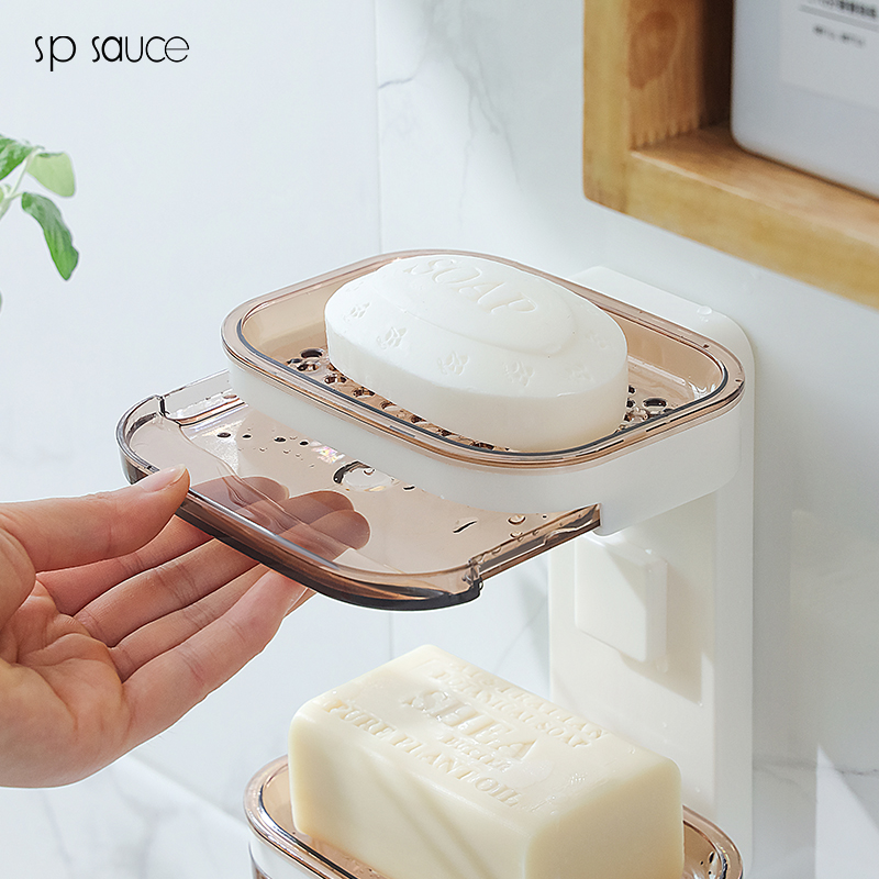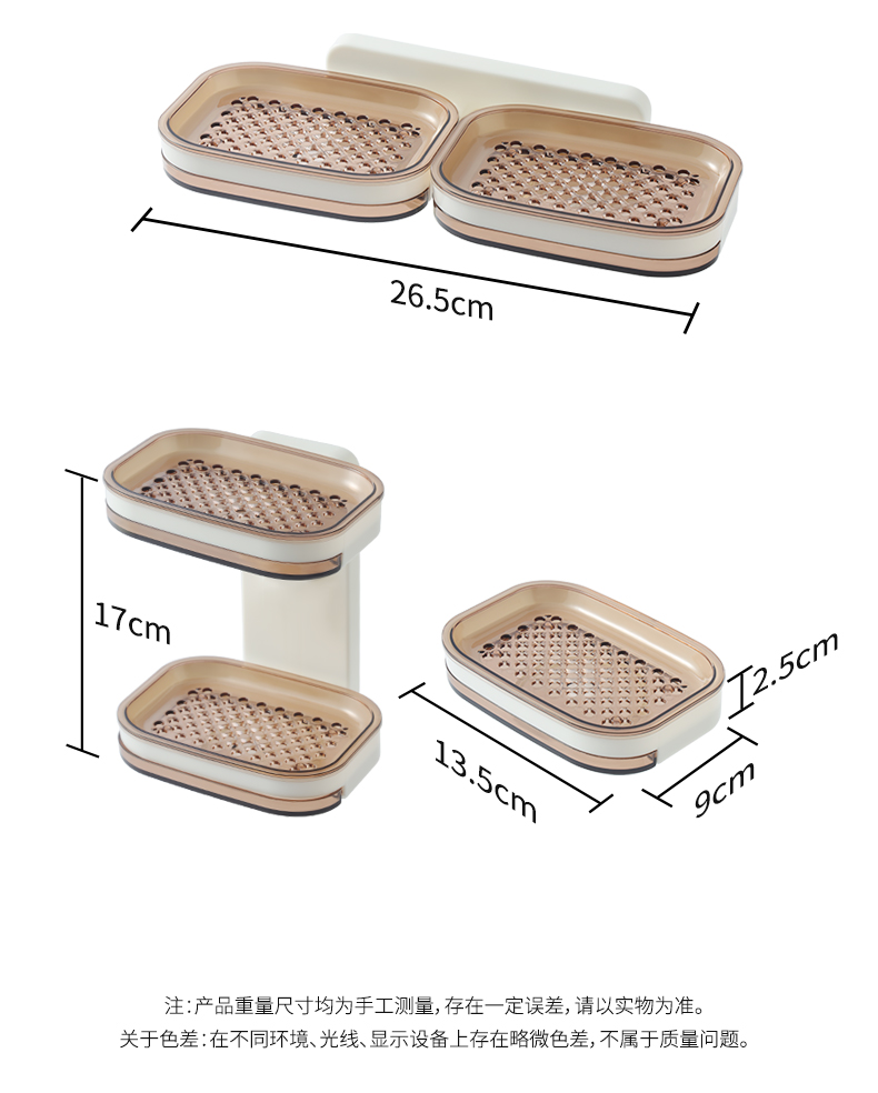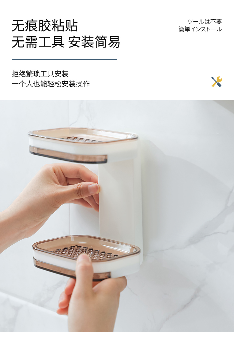 D双层旋转沥水肥皂盒 旋转创意沥水双层肥皂架卫生间壁挂肥皂盒免打孔浴室香皂盒架