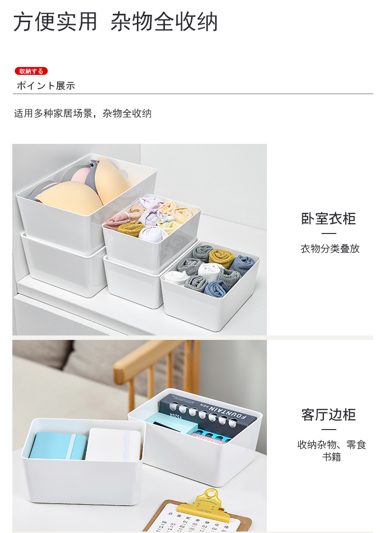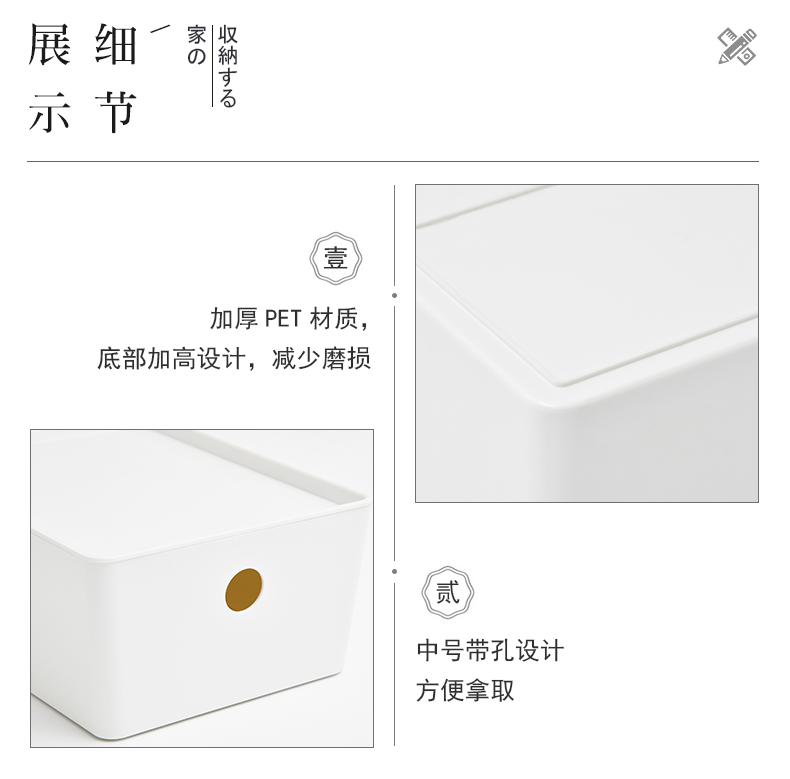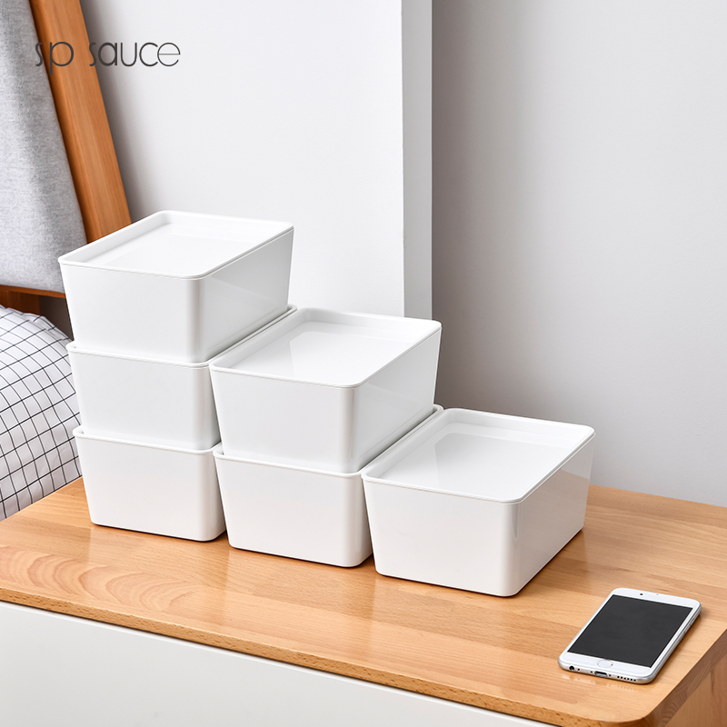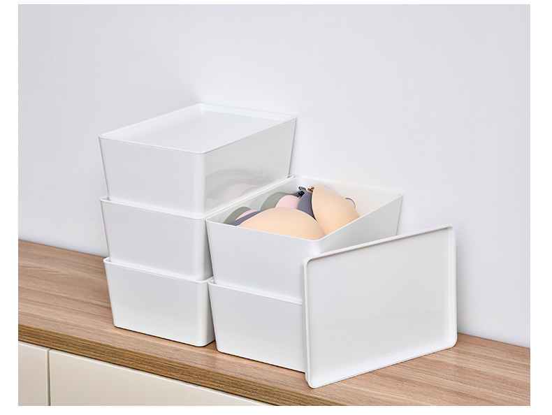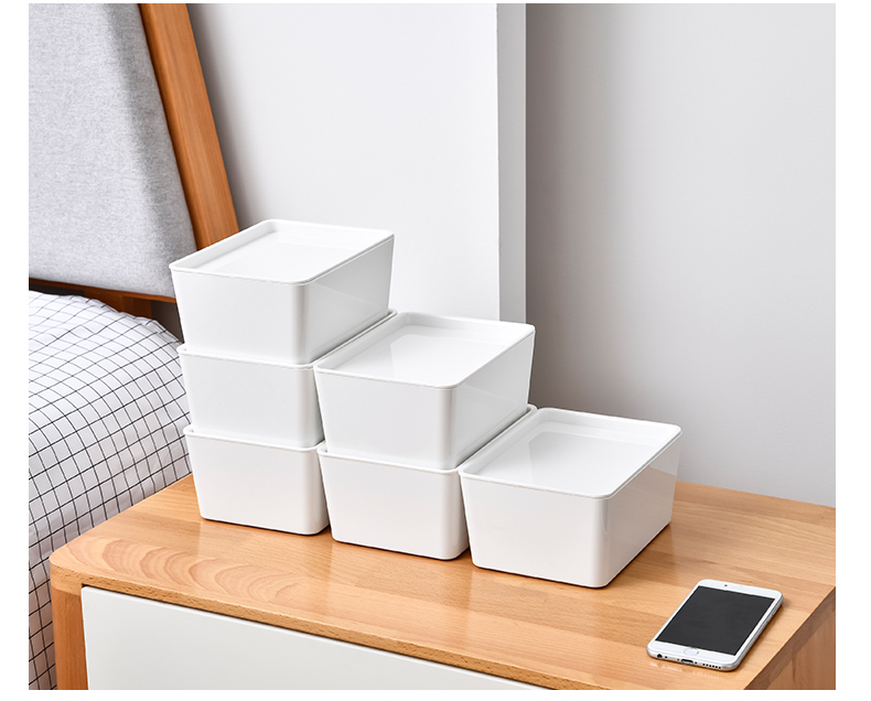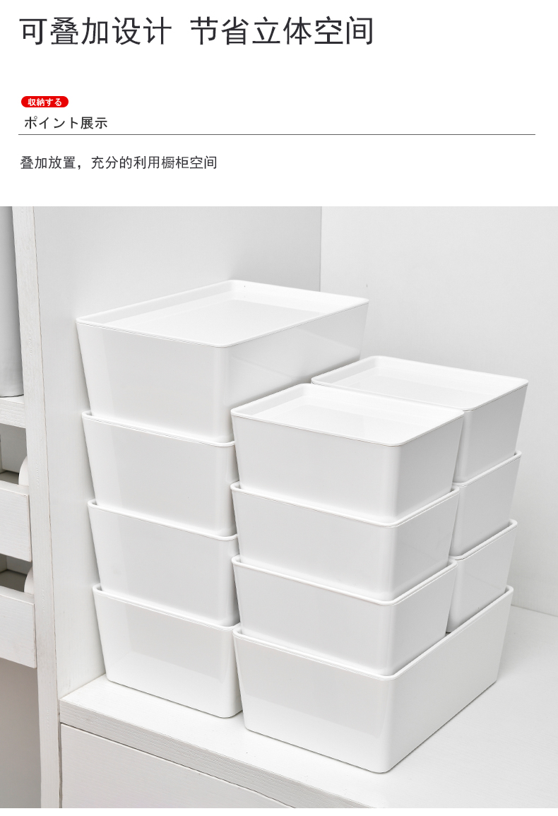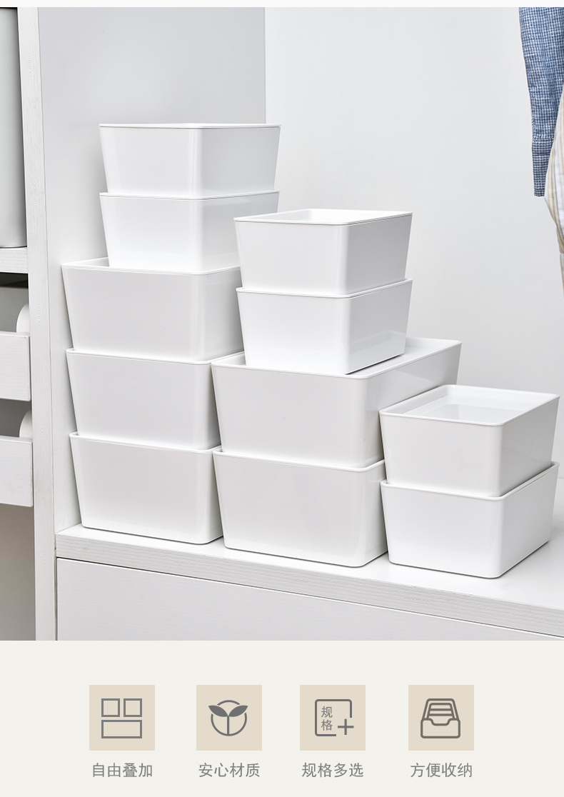 D PET 带盖收纳盒 小号 可叠加环保塑料收纳箱中小号收纳盒衣柜衣物整理箱零食玩具桌面装书储物箱 白色