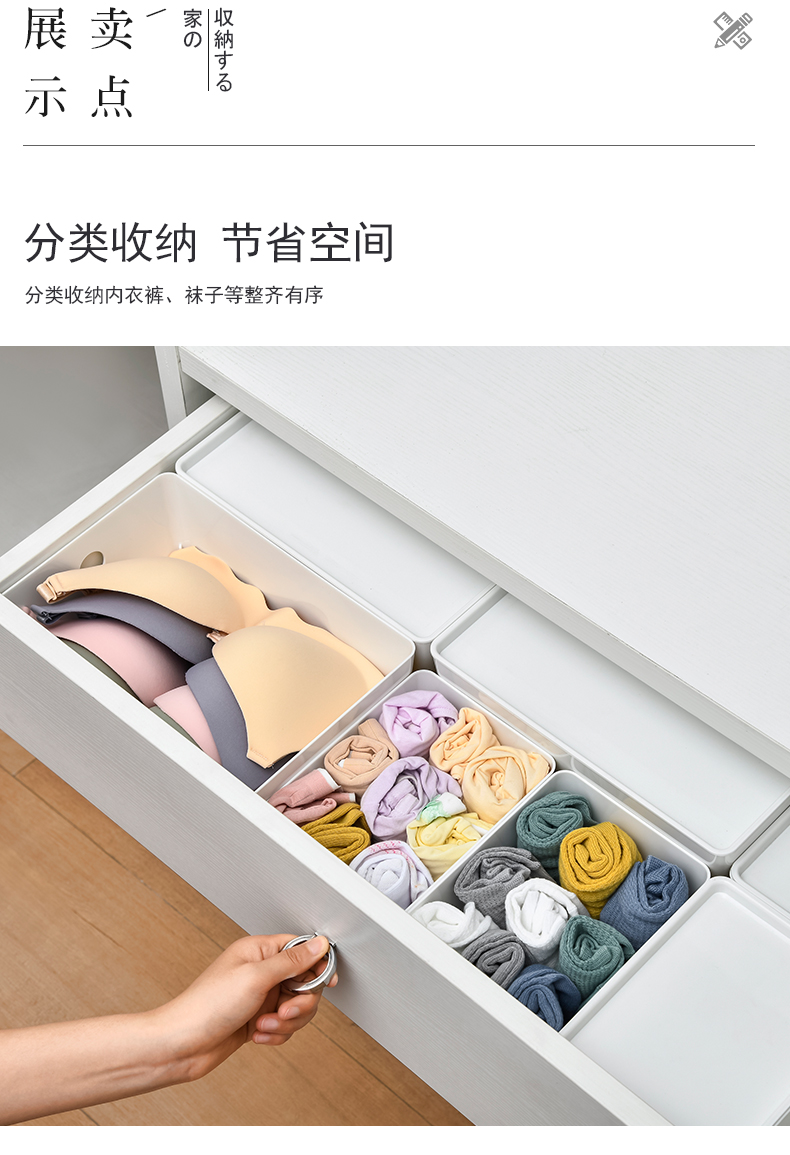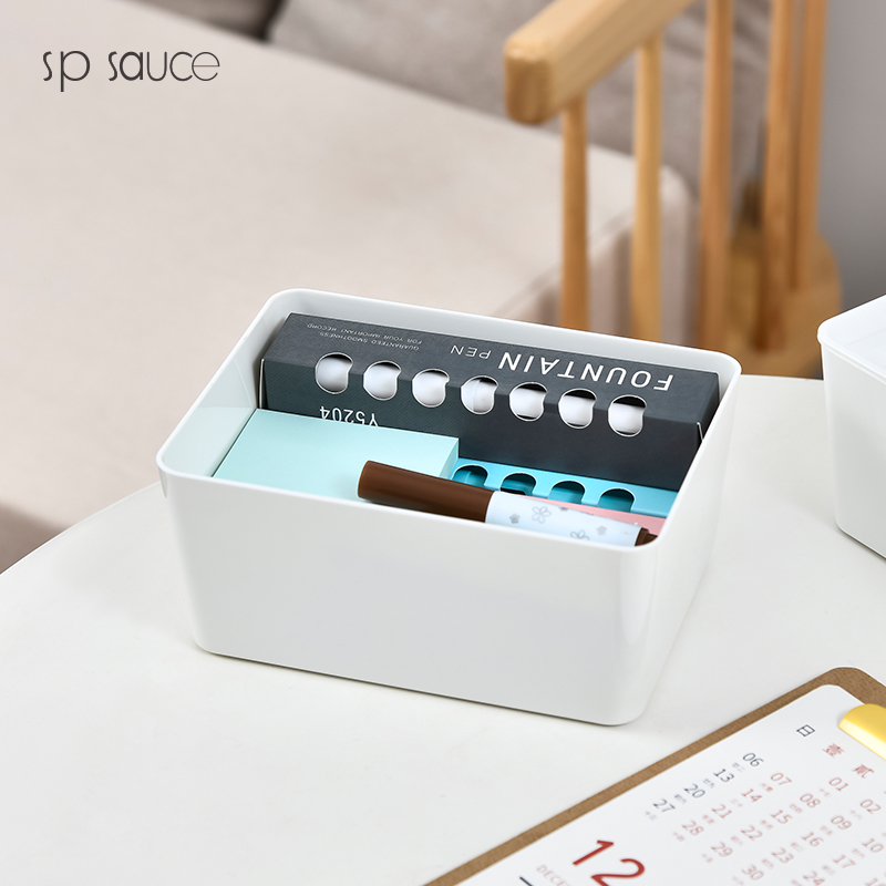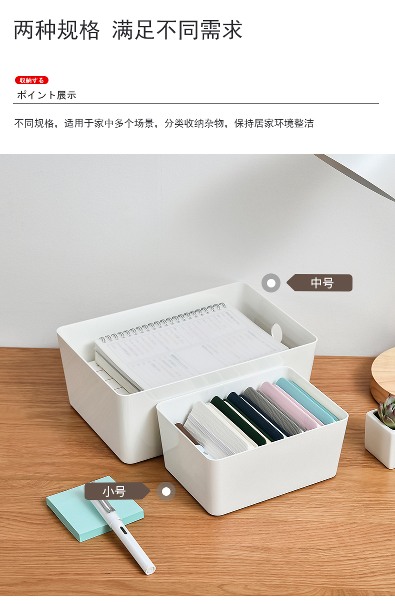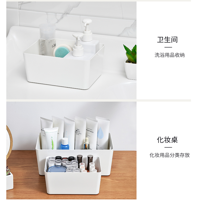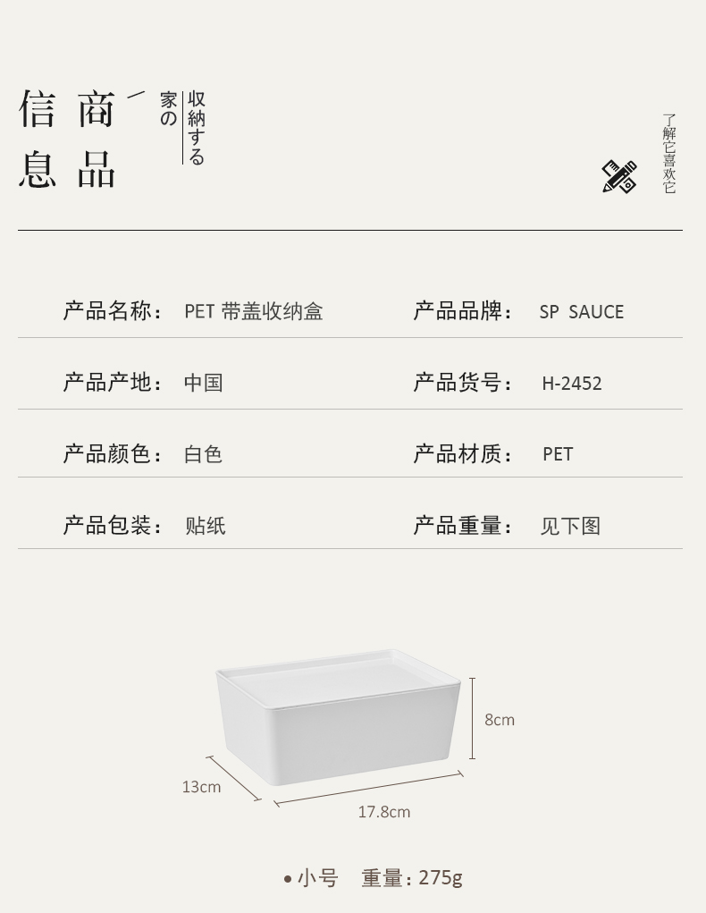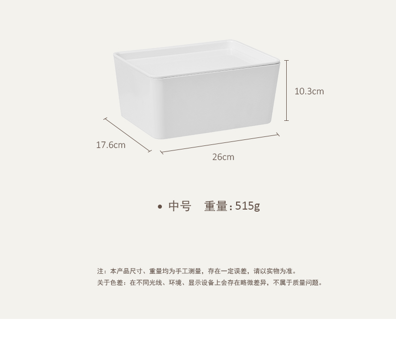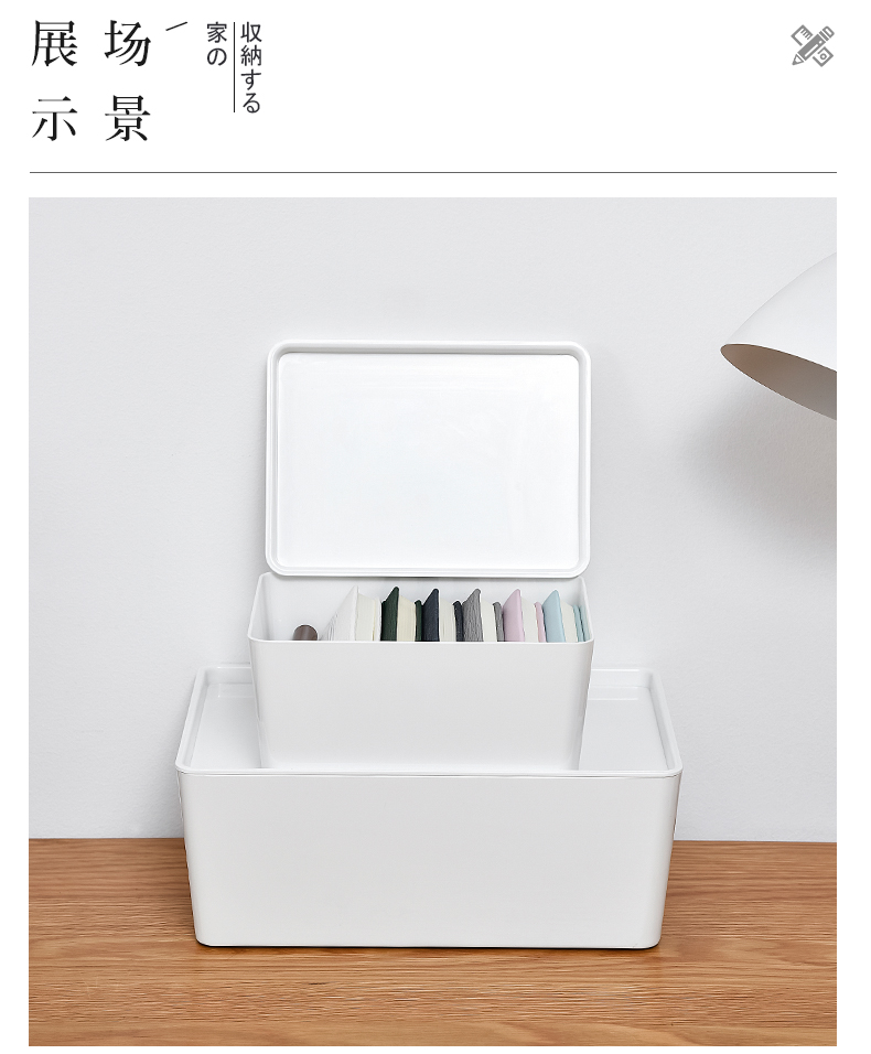D PET 带盖收纳盒 小号 可叠加环保塑料收纳箱中小号收纳盒衣柜衣物整理箱零食玩具桌面装书储物箱 白色