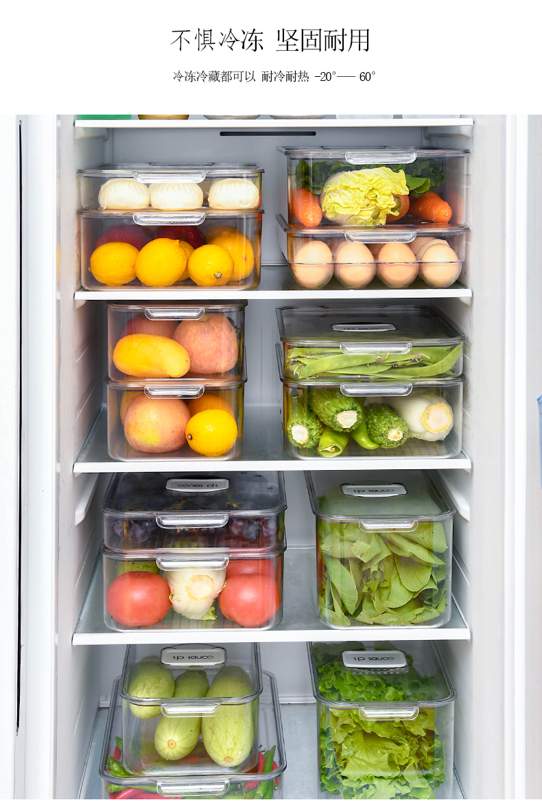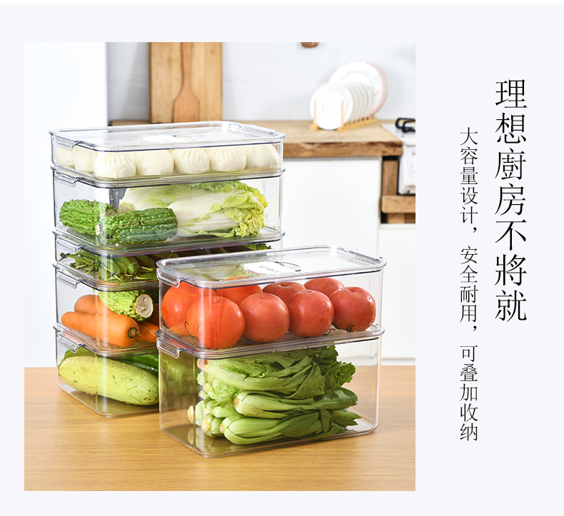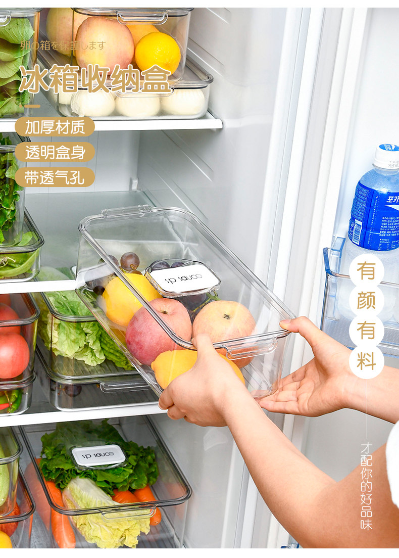 D PET冰箱收纳盒 宽形 大号 冰箱收纳盒厨房整理冷冻储物专用食品保鲜鸡蛋饺子神器蔬菜收纳盒
