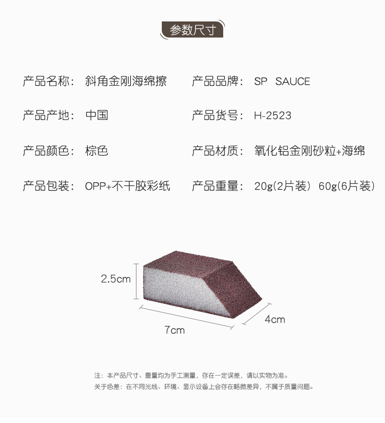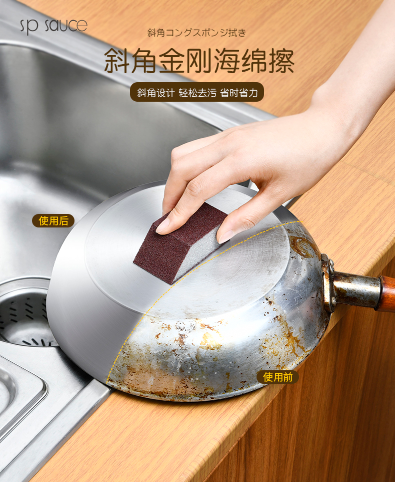 D 斜角金刚海绵擦 2片装 金刚砂海绵擦厨房洗锅魔力擦去污除垢清洁刷纳米海绵锅擦斜角
