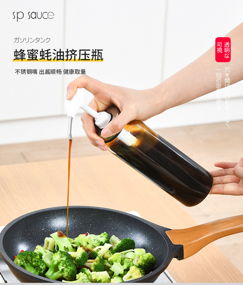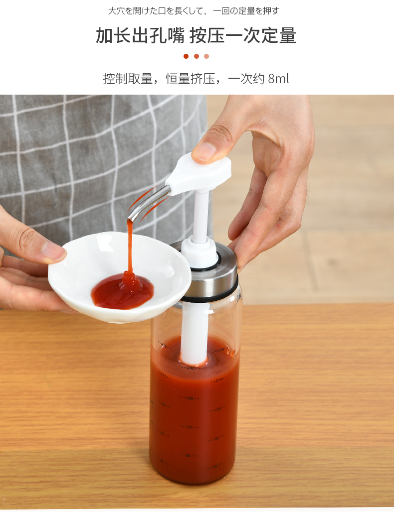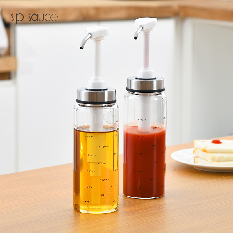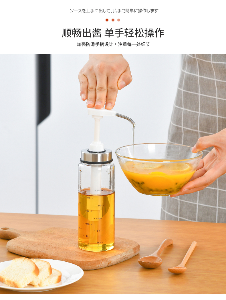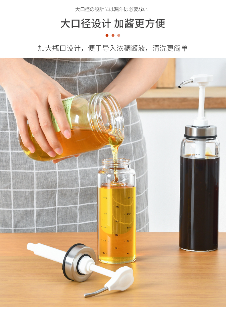 D 蜂蜜蚝油挤压瓶300ML 蜂蜜瓶玻璃按压瓶酱料挤压瓶透明装蜂蜜分装瓶酱料瓶调料瓶送软管