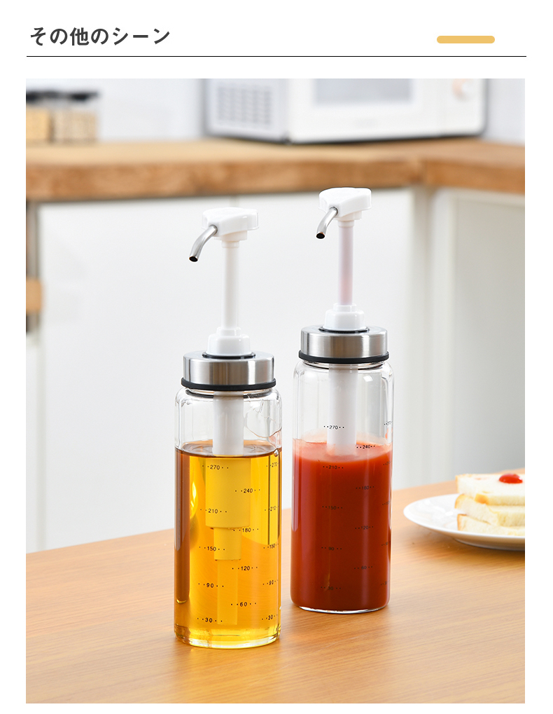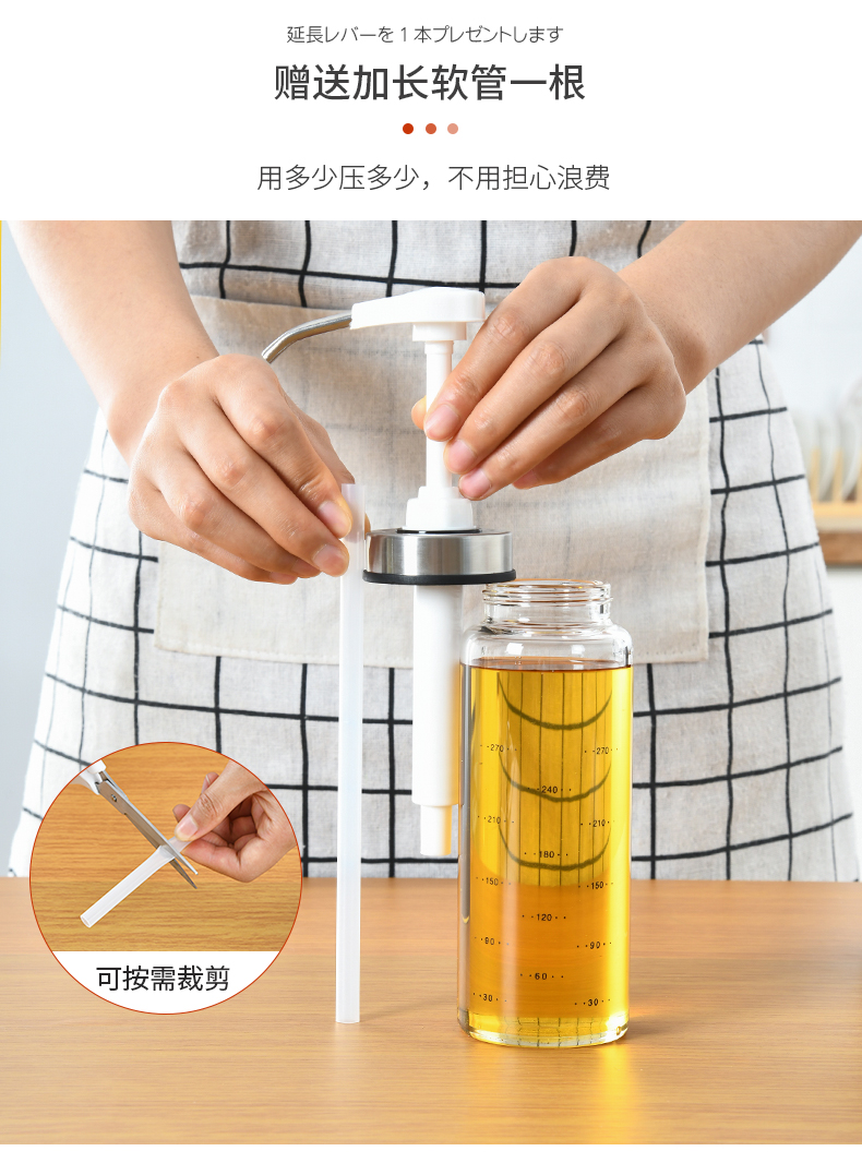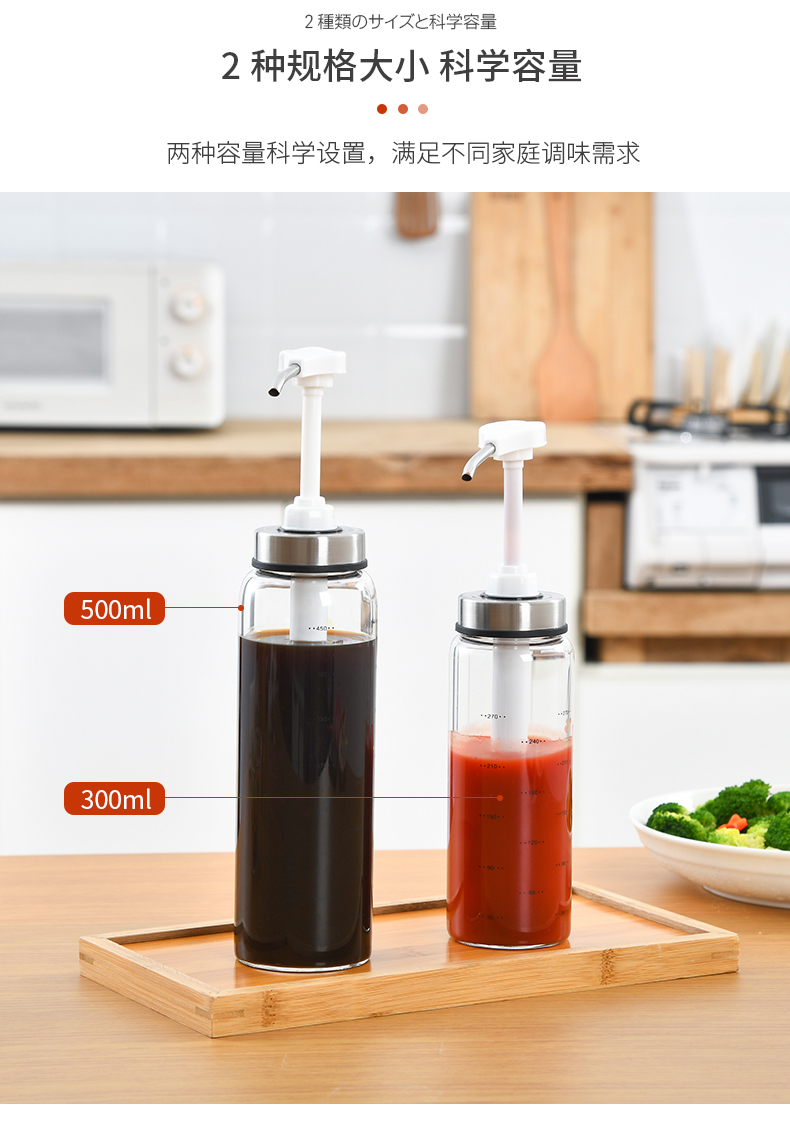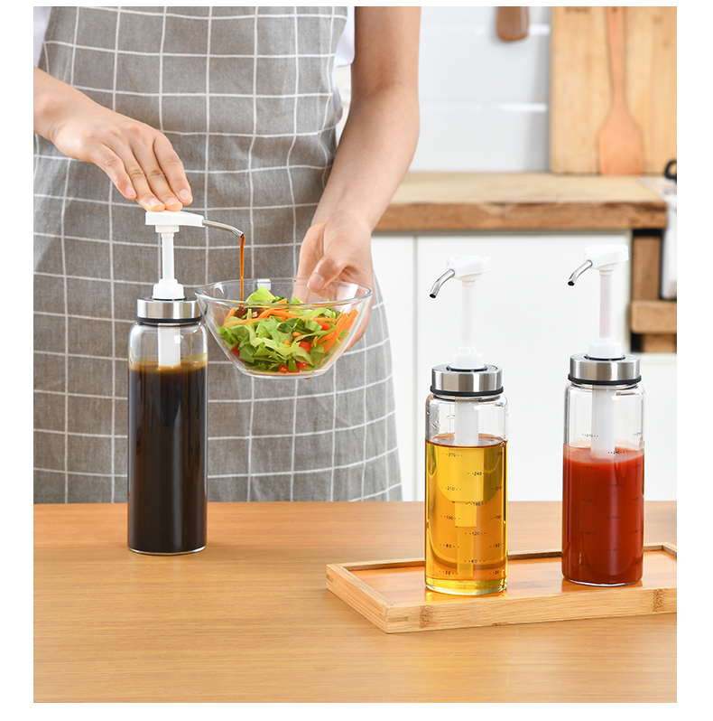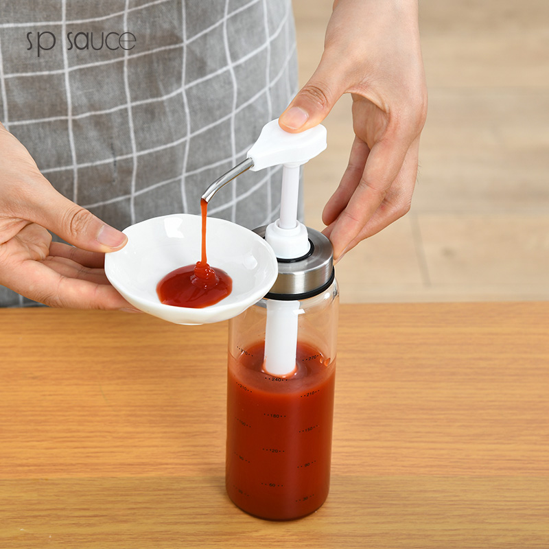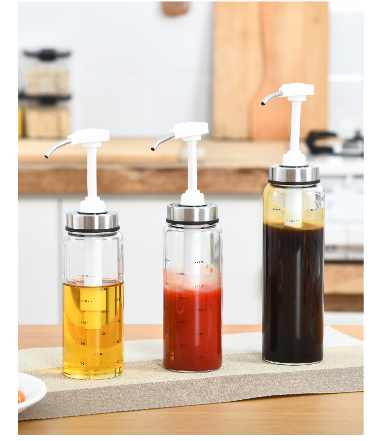 D 蜂蜜蚝油挤压瓶300ML 蜂蜜瓶玻璃按压瓶酱料挤压瓶透明装蜂蜜分装瓶酱料瓶调料瓶送软管