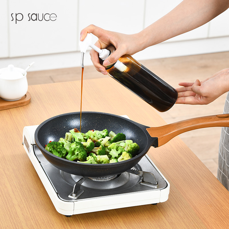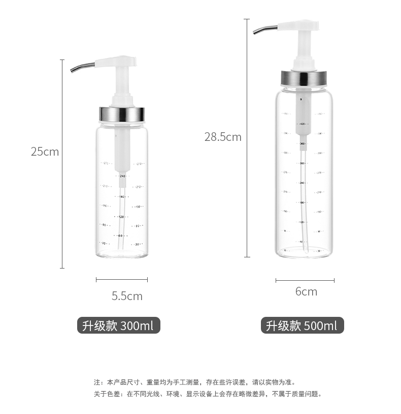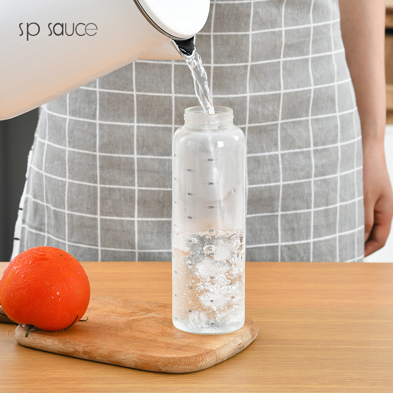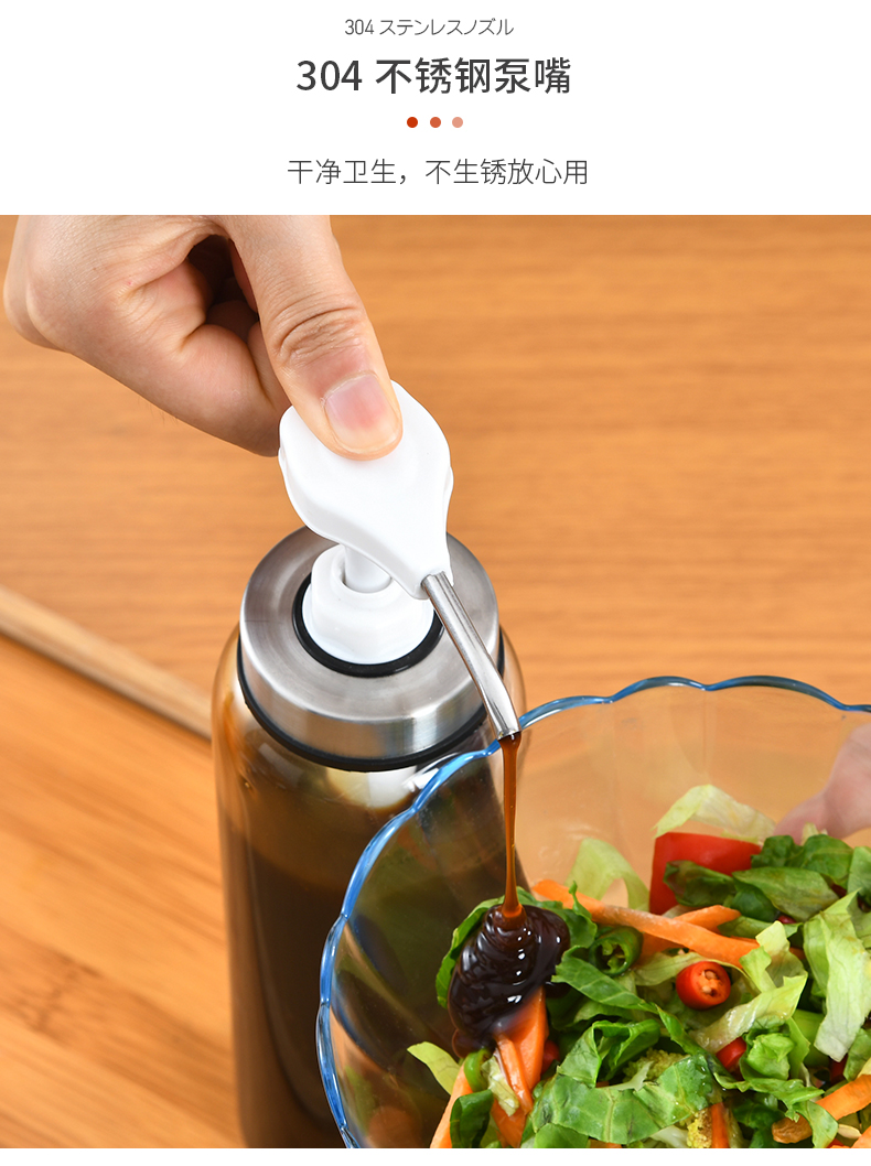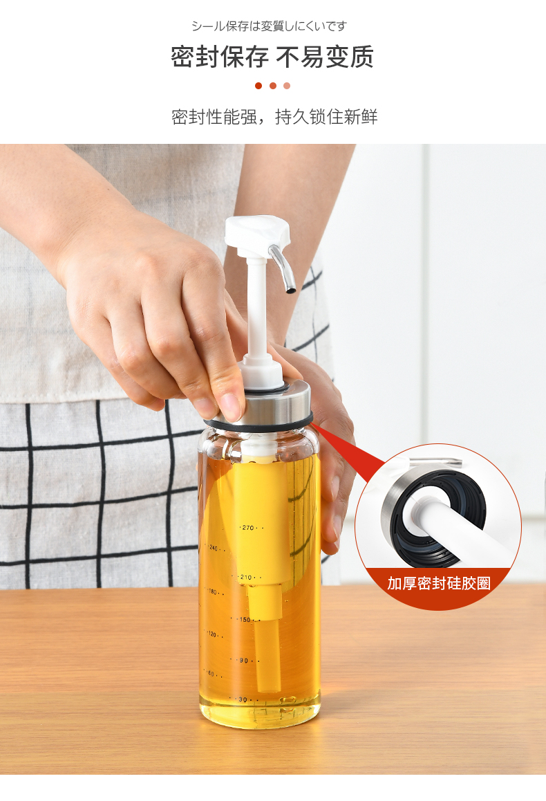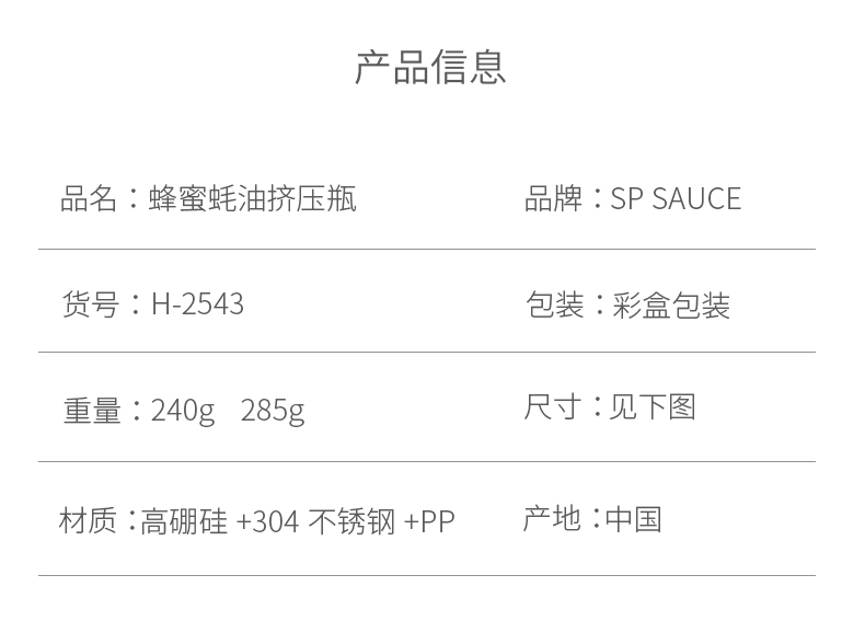 D 蜂蜜蚝油挤压瓶300ML 蜂蜜瓶玻璃按压瓶酱料挤压瓶透明装蜂蜜分装瓶酱料瓶调料瓶送软管