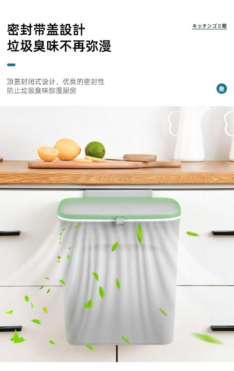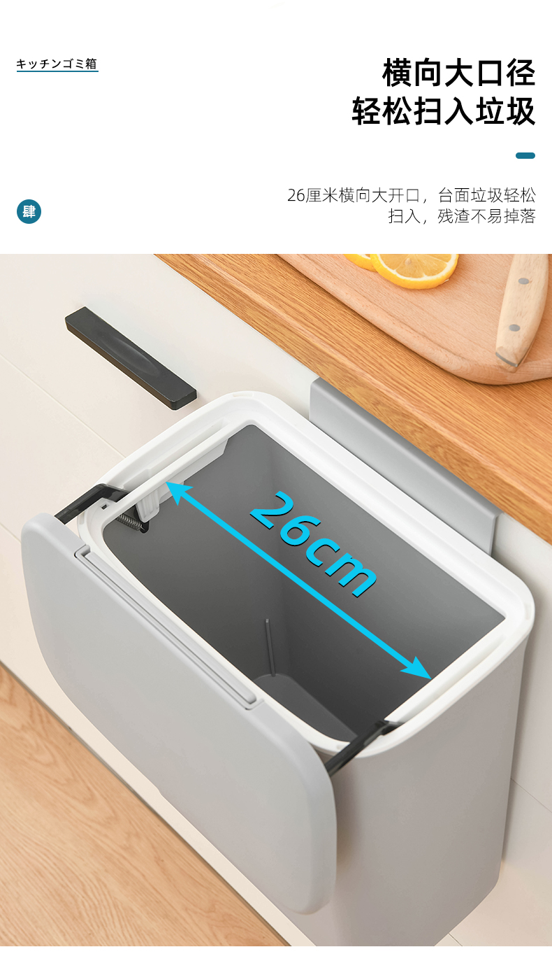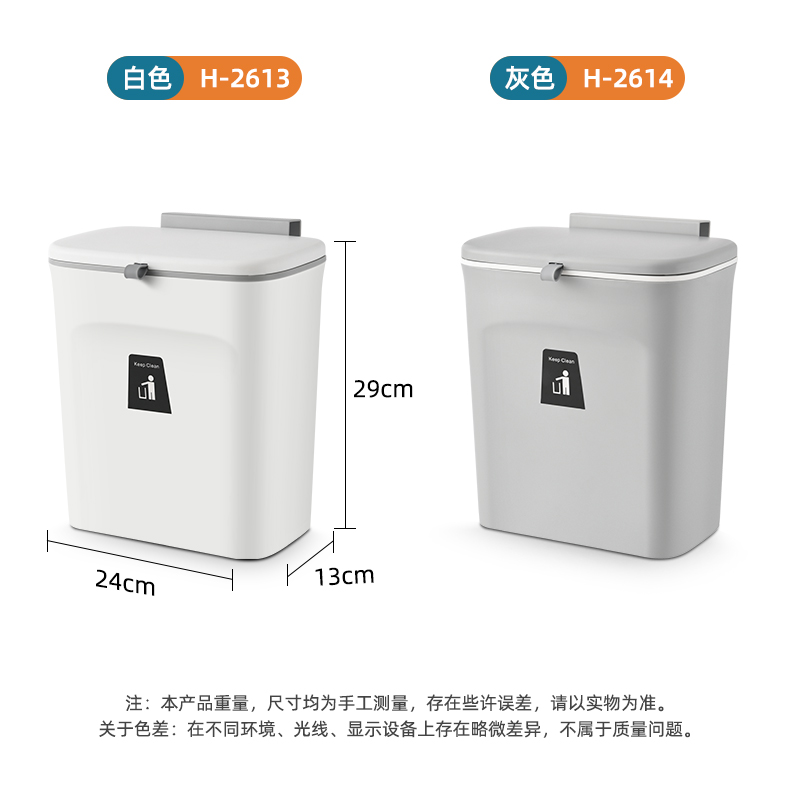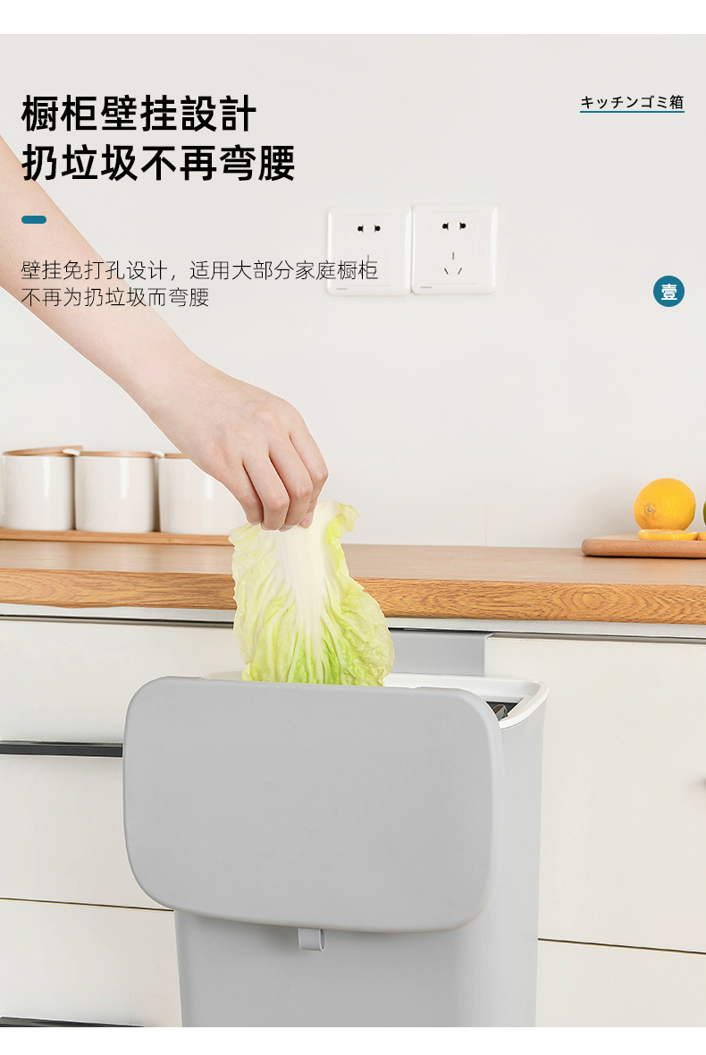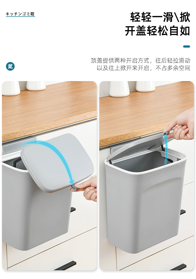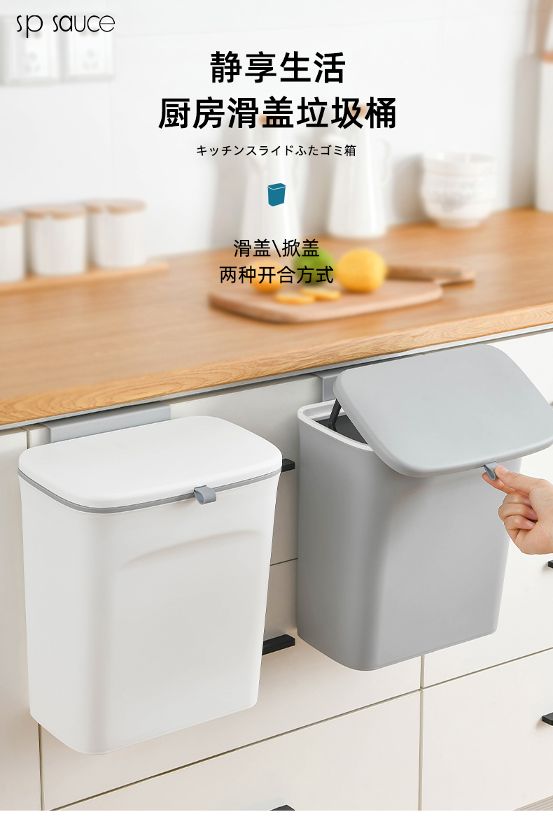 D 厨房用滑盖垃圾桶 厨房垃圾桶带盖家用橱柜门壁挂式厕所卫生间客厅悬挂创意收纳纸篓