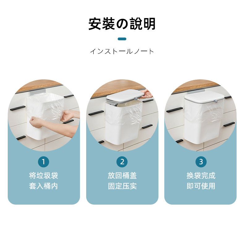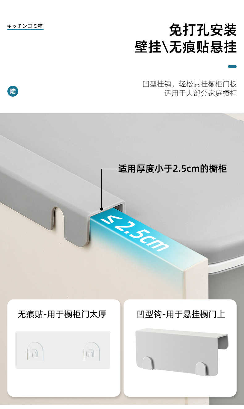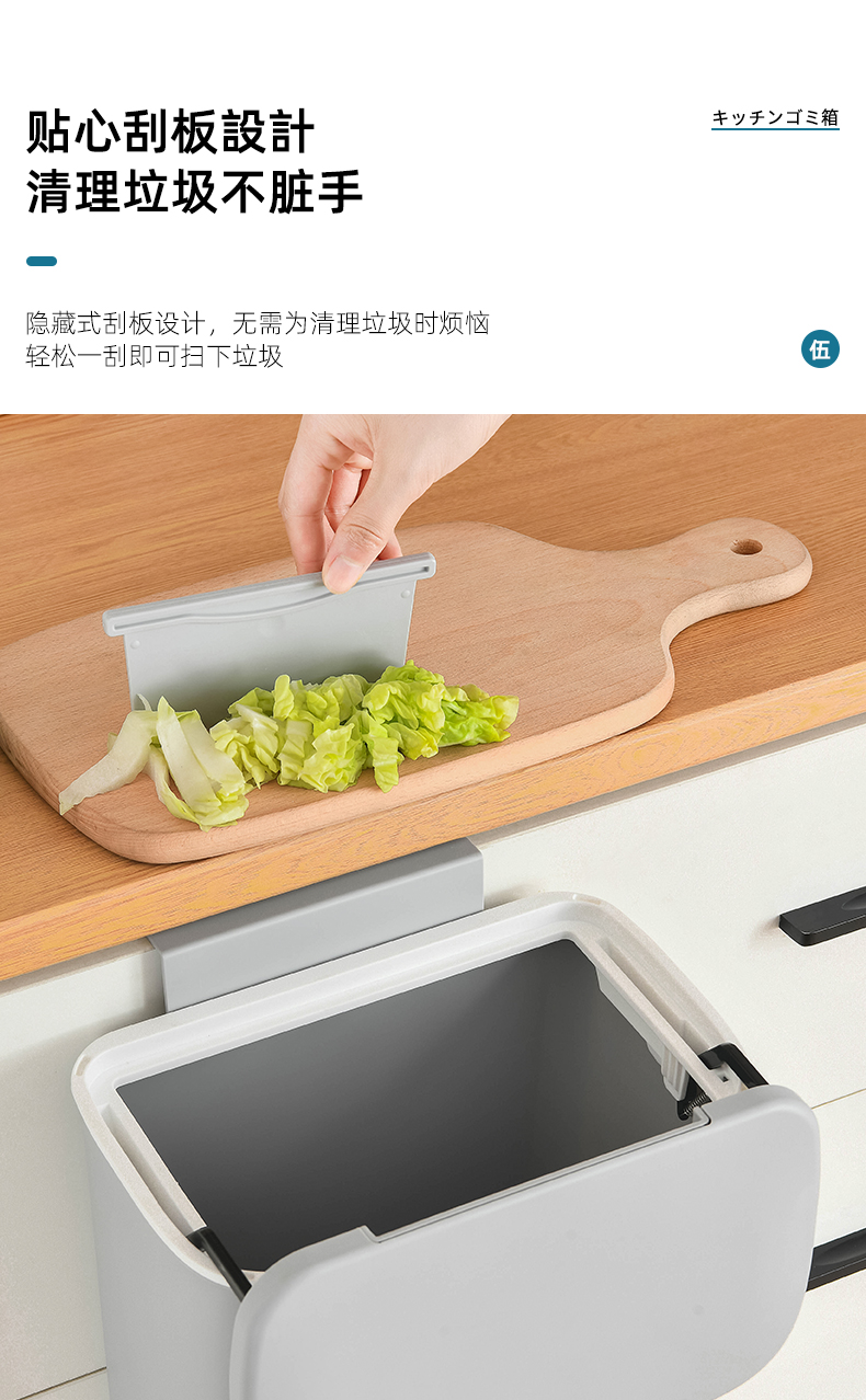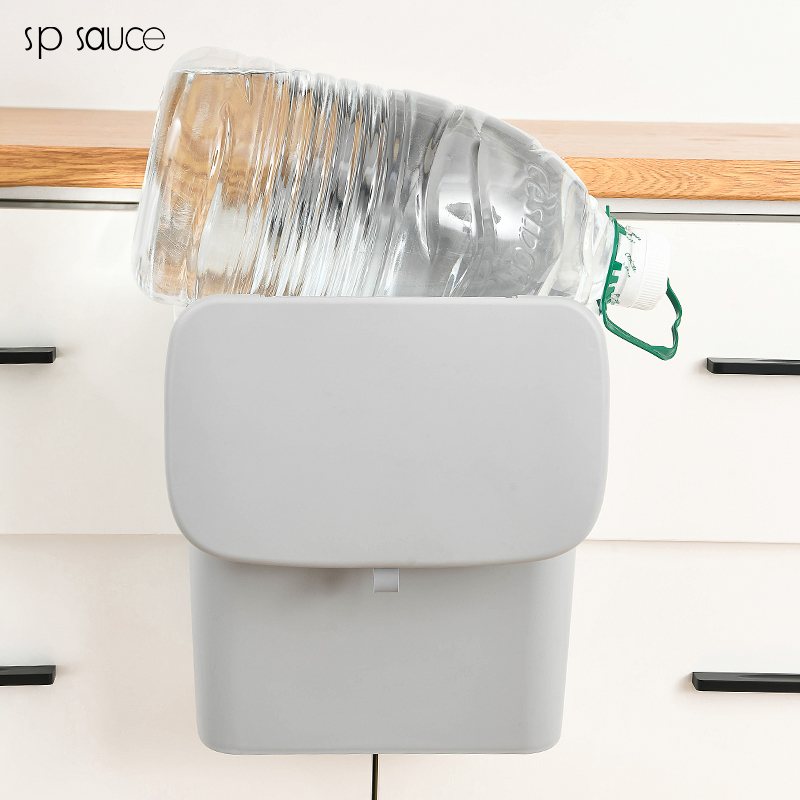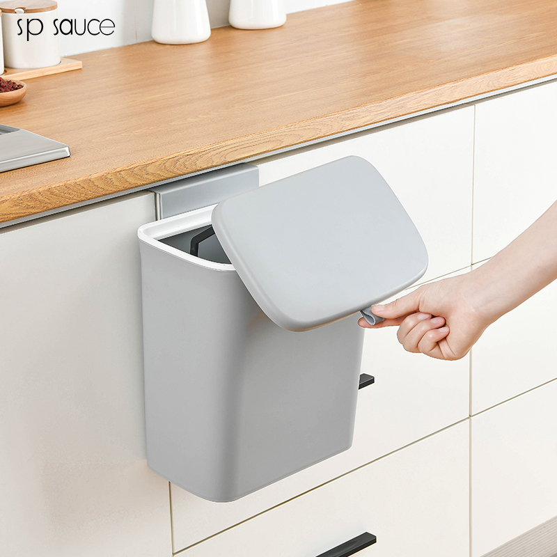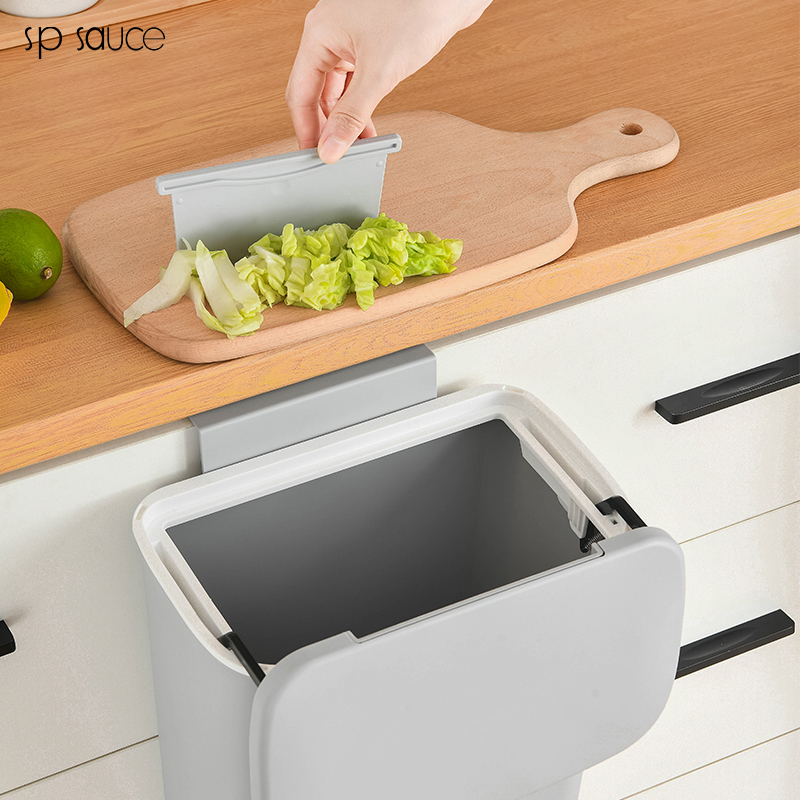 D 厨房用滑盖垃圾桶 厨房垃圾桶带盖家用橱柜门壁挂式厕所卫生间客厅悬挂创意收纳纸篓