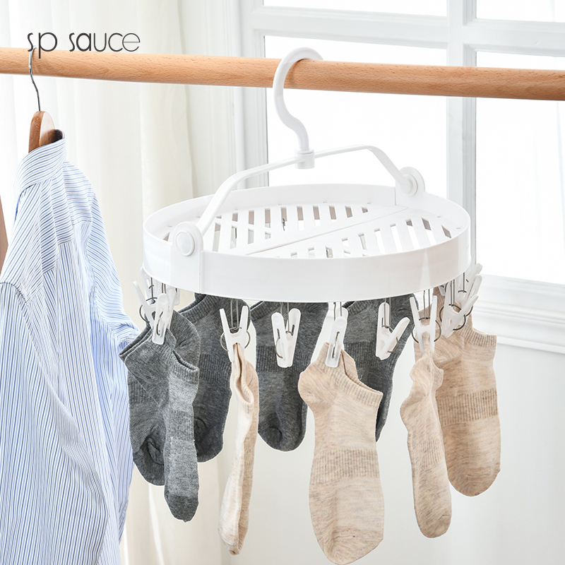 D 晾晒架 18夹 多功能衣架收纳神器晾衣架宿舍家用折叠衣架多夹子晾晒袜子内衣架