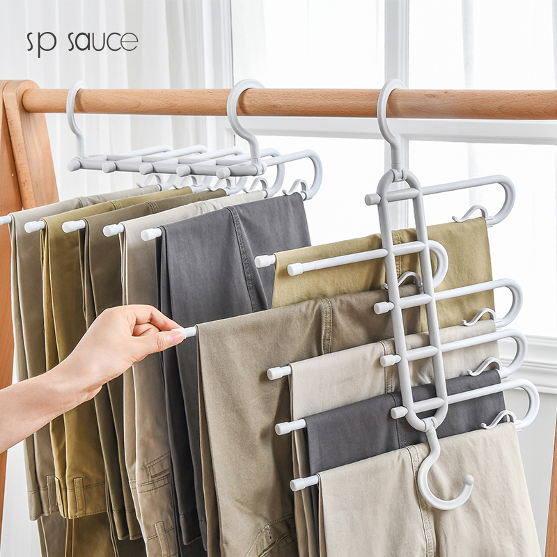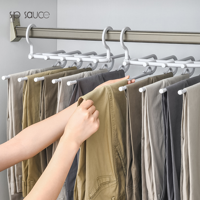 多功能折叠裤架 多功能裤架折叠魔术裤夹家用衣柜伸缩多层衣架挂裤子收纳挂架神器