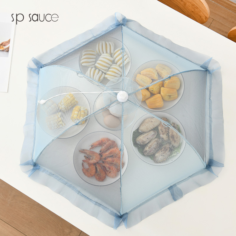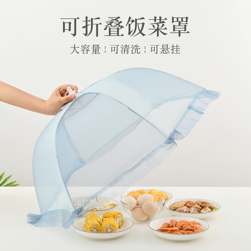 D 家用防尘菜罩 盖菜罩家用折叠餐桌罩子防苍蝇遮剩菜食物套厨房饭菜可拆洗防尘伞