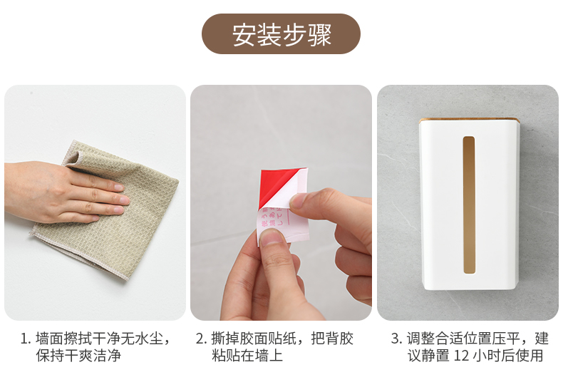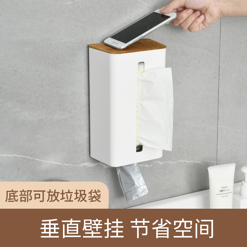 D 多功能壁挂收纳盒 免打孔吸壁抽纸盒无痕贴浴室纸巾盒收纳盒电梯间置物架无痕胶纸巾盒