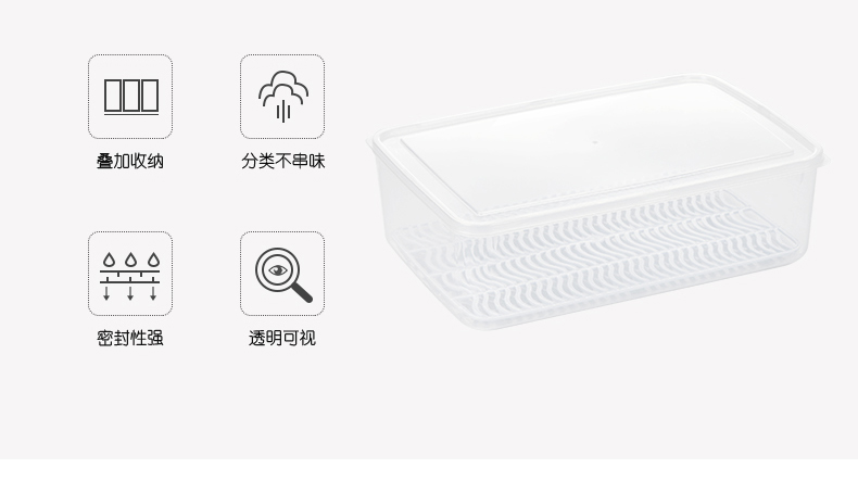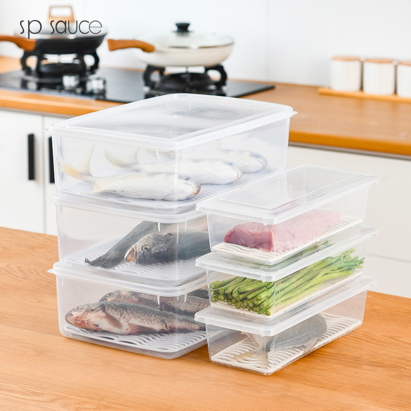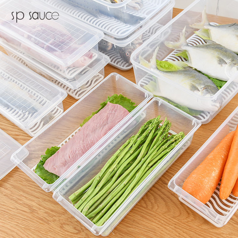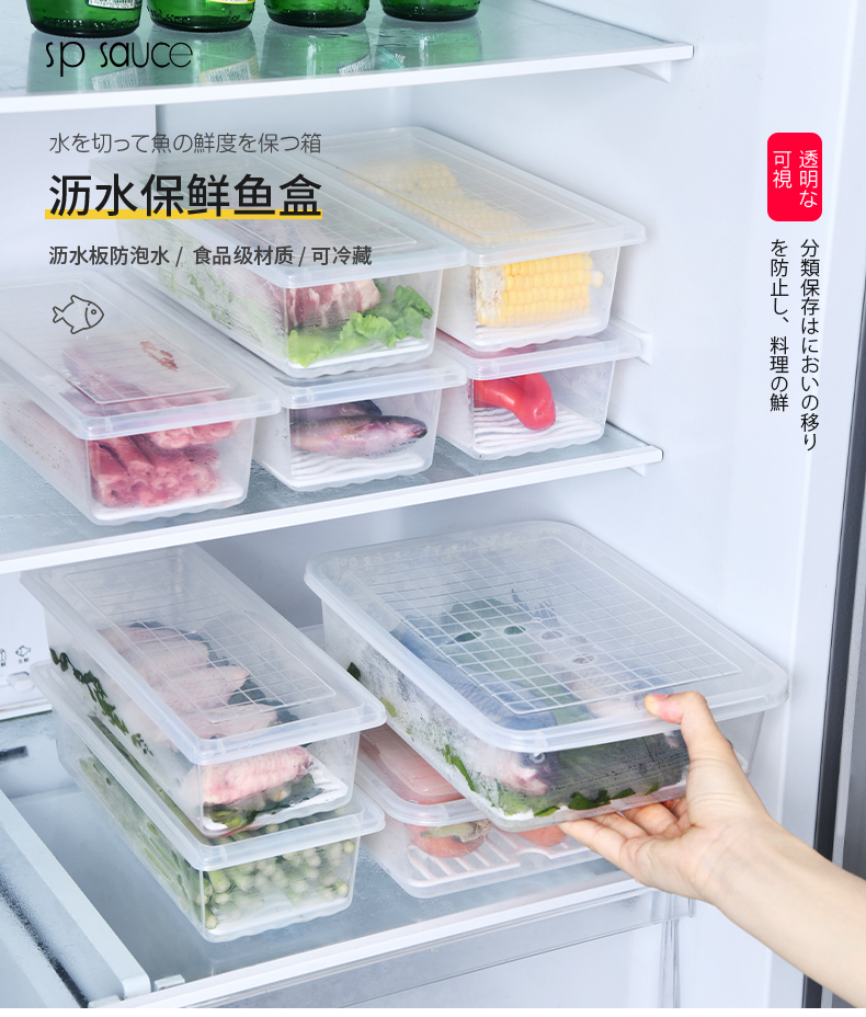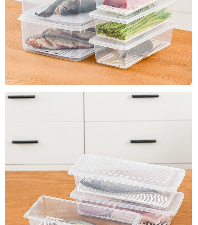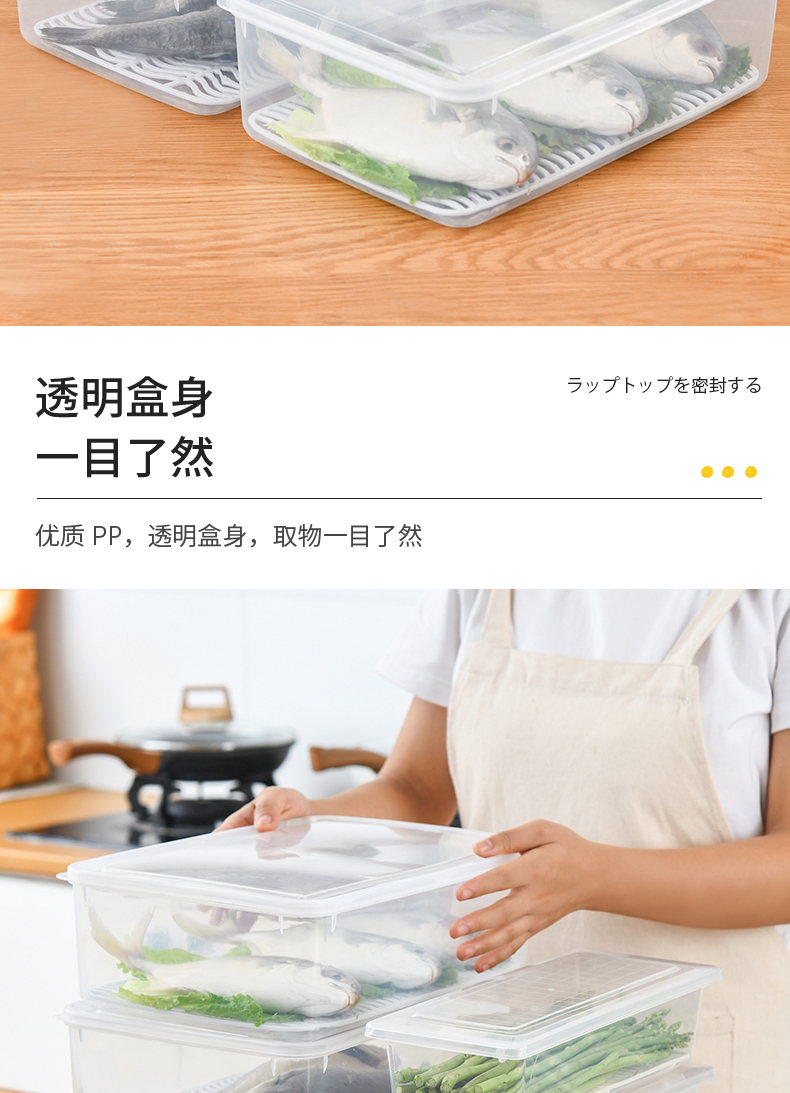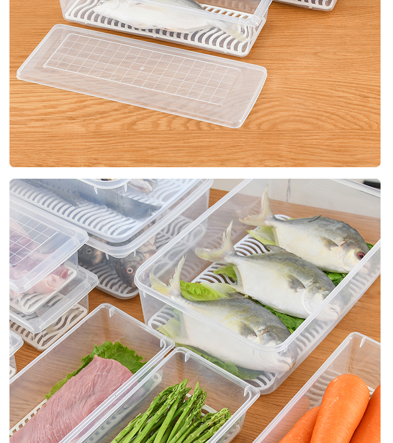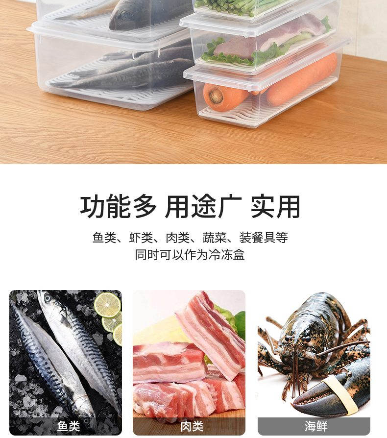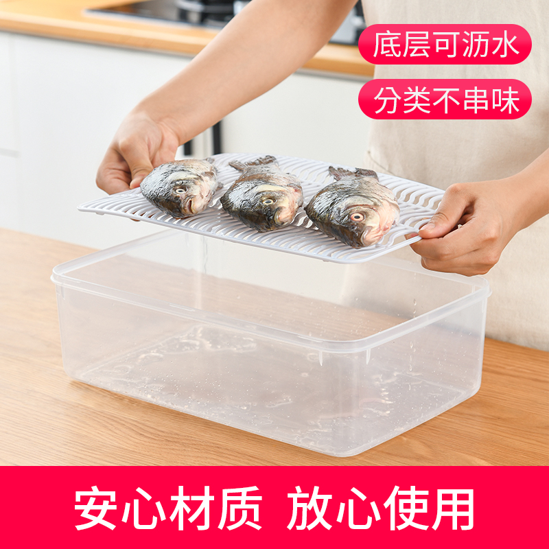 D沥水保鲜鱼盒 6.2L 冰箱收纳盒塑料透明果蔬保鲜盒密封带盖储物盒可沥水