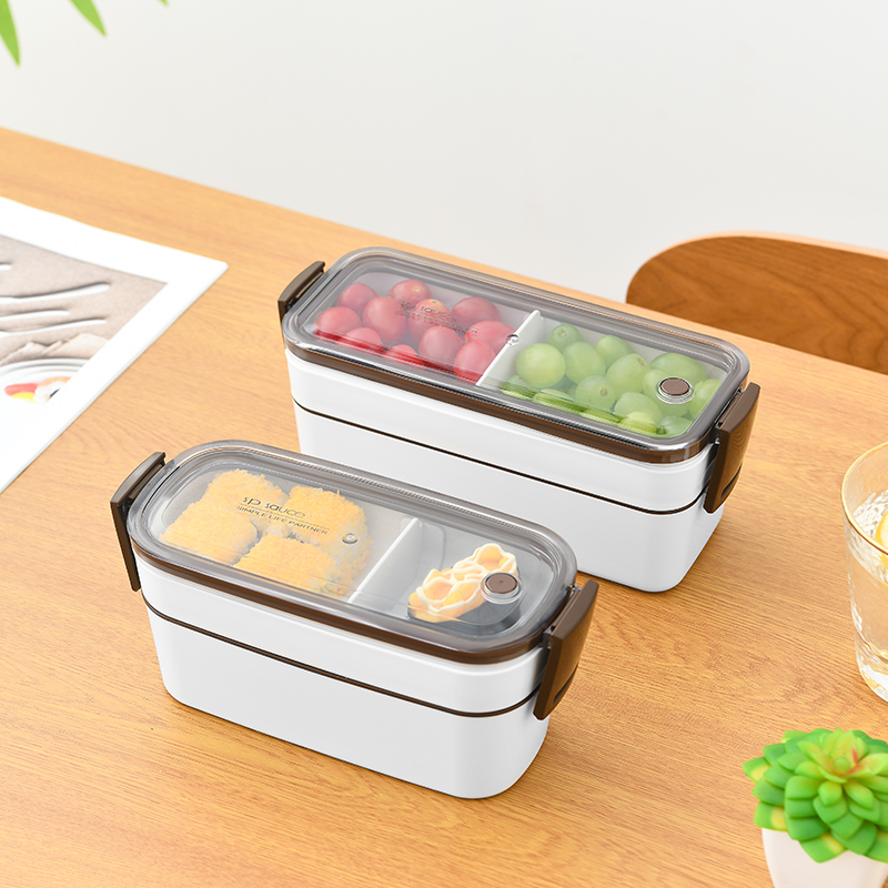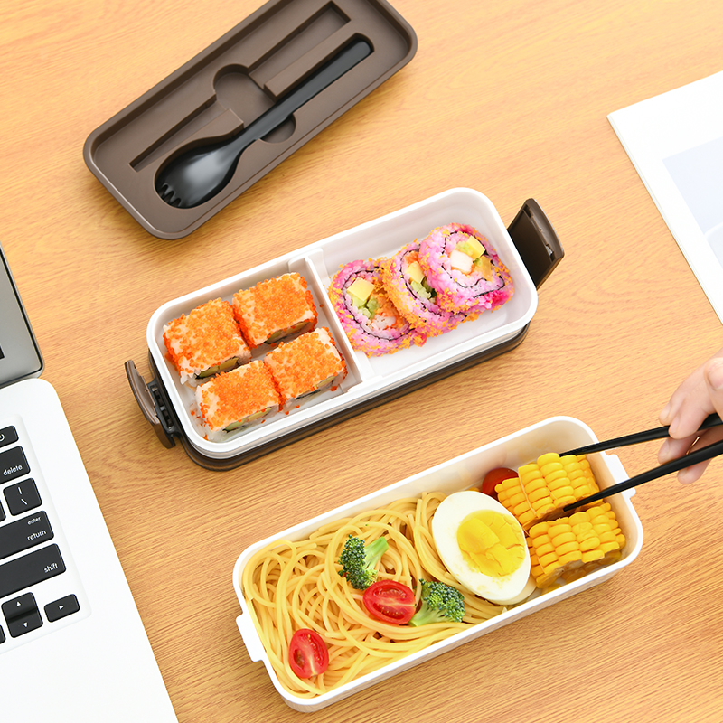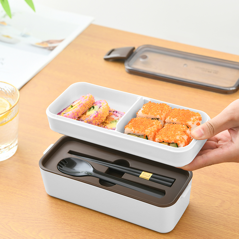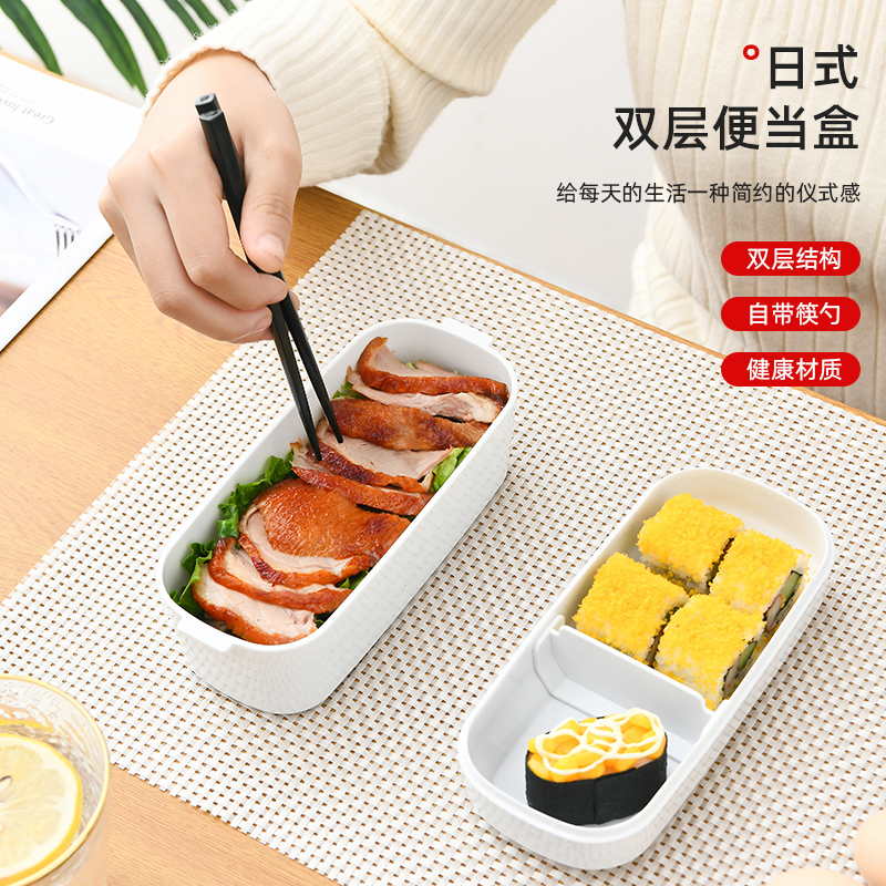 D 日式双层分隔便当盒(900ml) 双层饭盒上班族学生便当盒分隔型可微波加热密封带保温袋日式餐具盒套装