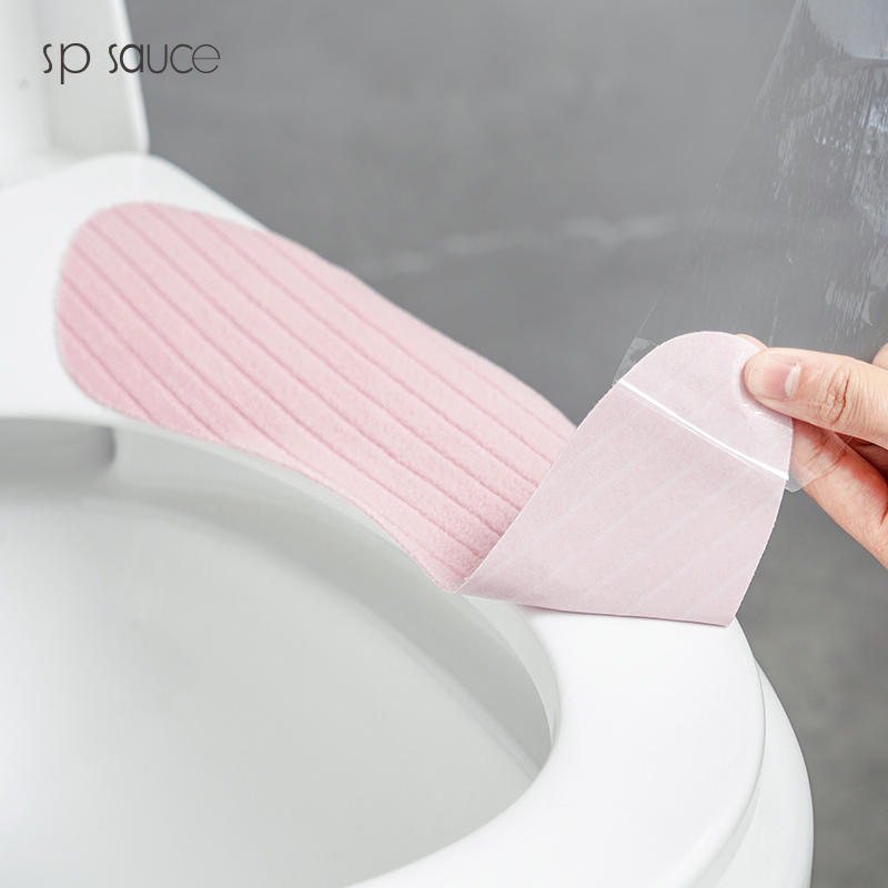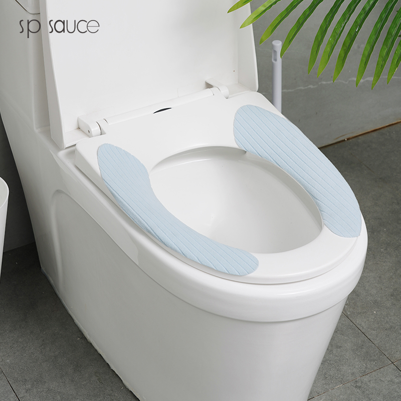 D 摇粒绒竖纹马桶垫 马桶垫粘贴式马桶贴冬季保暖毛绒印花马桶坐垫圈可裁剪反复水洗坐便套