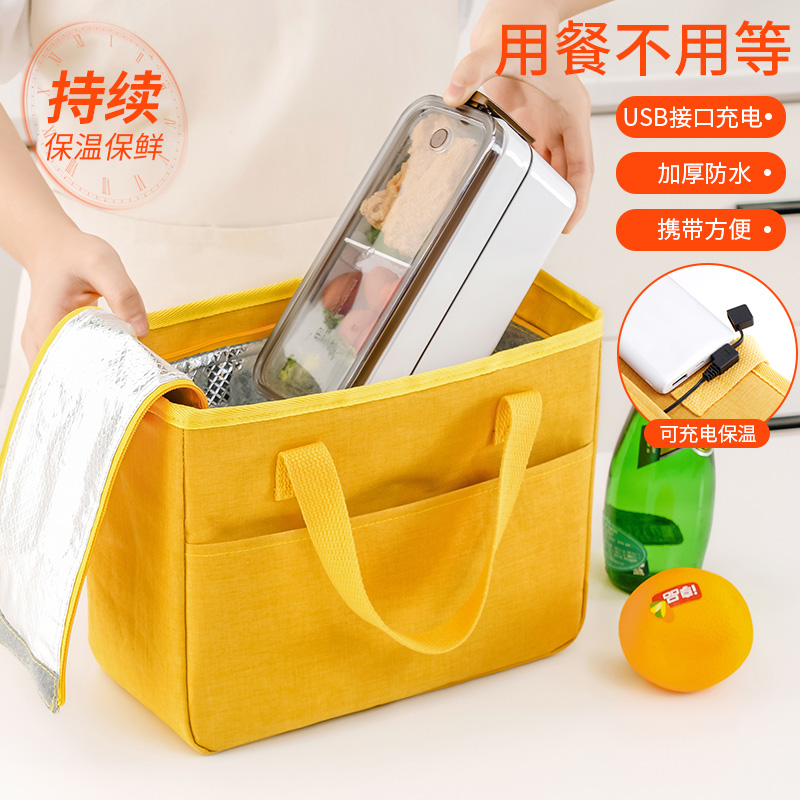 发热便当盒保温袋 加厚保温便当包手提饭盒袋保冷保温袋铝箔上班饭包保鲜野餐包手提款可充电发热