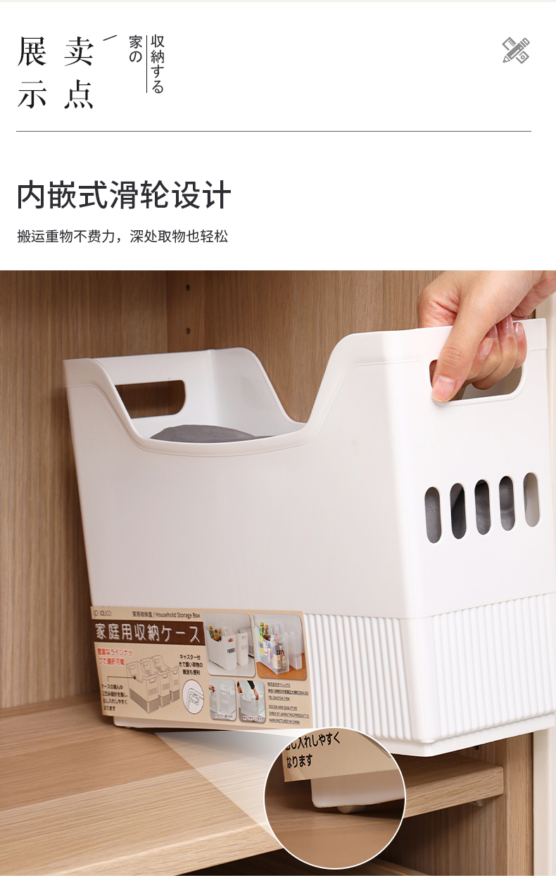D家用收纳盒(带滑轮小号) 简约收纳盒桌面多功能储物置物家用收纳箱衣物杂物整理箱带滑轮