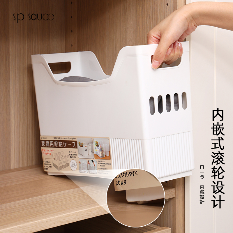 家用收纳盒(带滑轮中号) 简约收纳盒桌面多功能储物置物家用收纳箱衣物杂物整理箱带滑轮