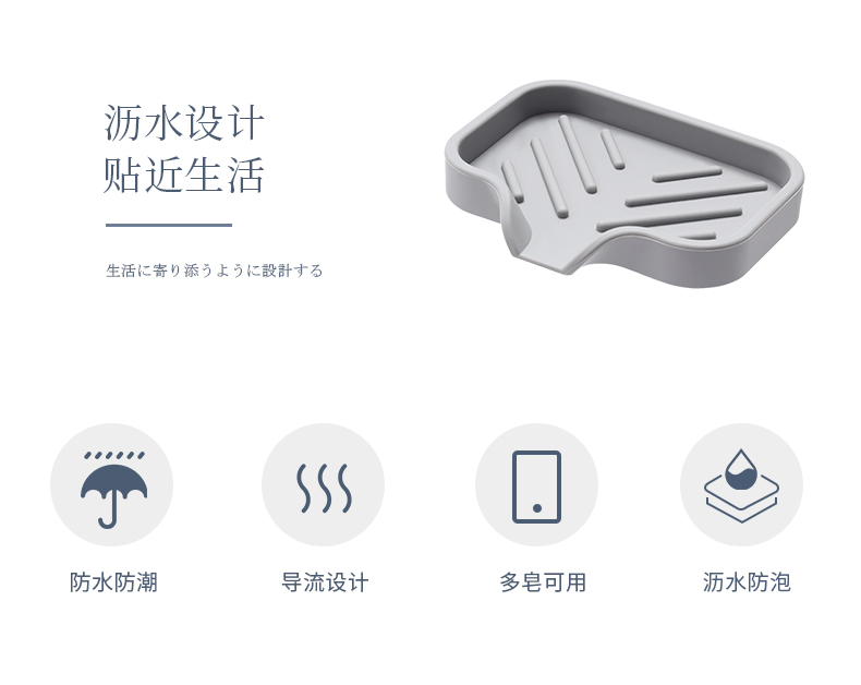 D 硅胶皂盒(带导流口) 导流式香皂盒沥水硅胶肥皂盒家用创意浴室洗漱台防滑排水皂托