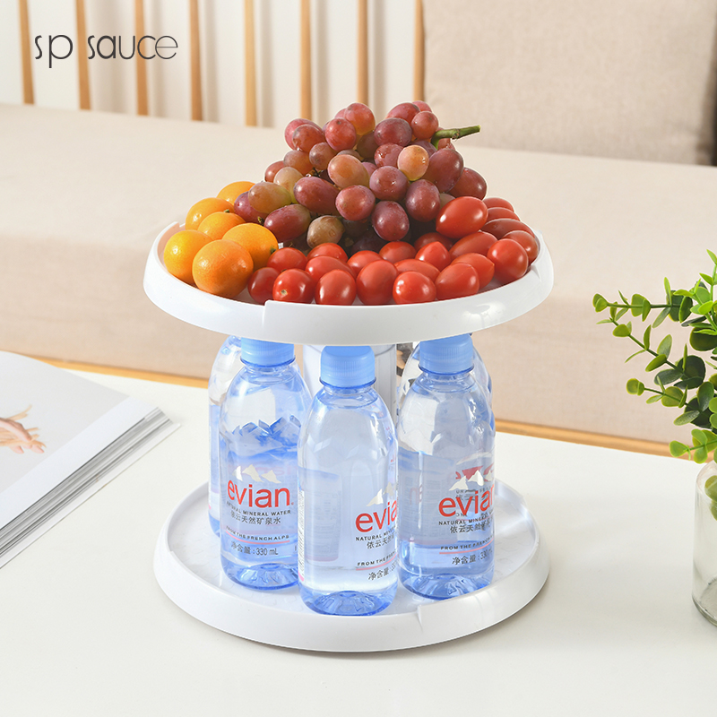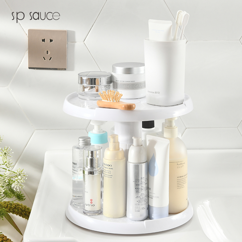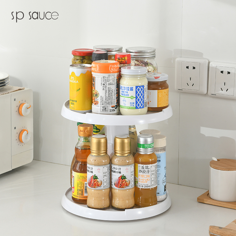 D 双层可调节旋转盘 可旋转式浴室客厅收纳厨房调料置物架台面调味品放油盐酱醋瓶收纳架子双层圆盘