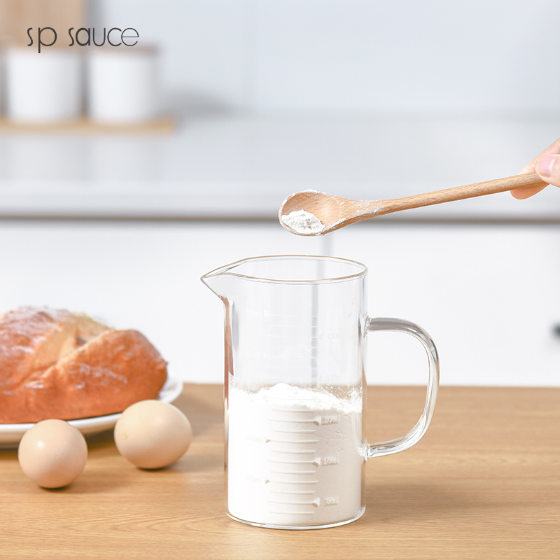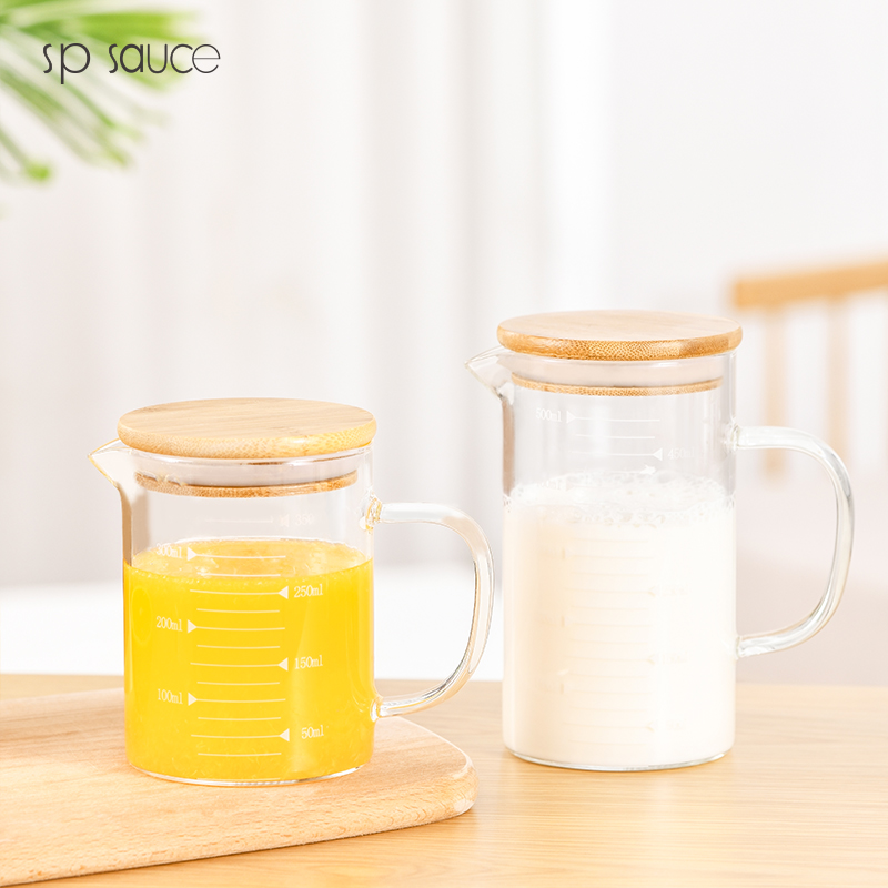 D玻璃量杯500ml(带盖) 透明量杯带盖带刻度高硼硅玻璃计量杯测量杯烘焙工具精密刻度耐高温可微波加热