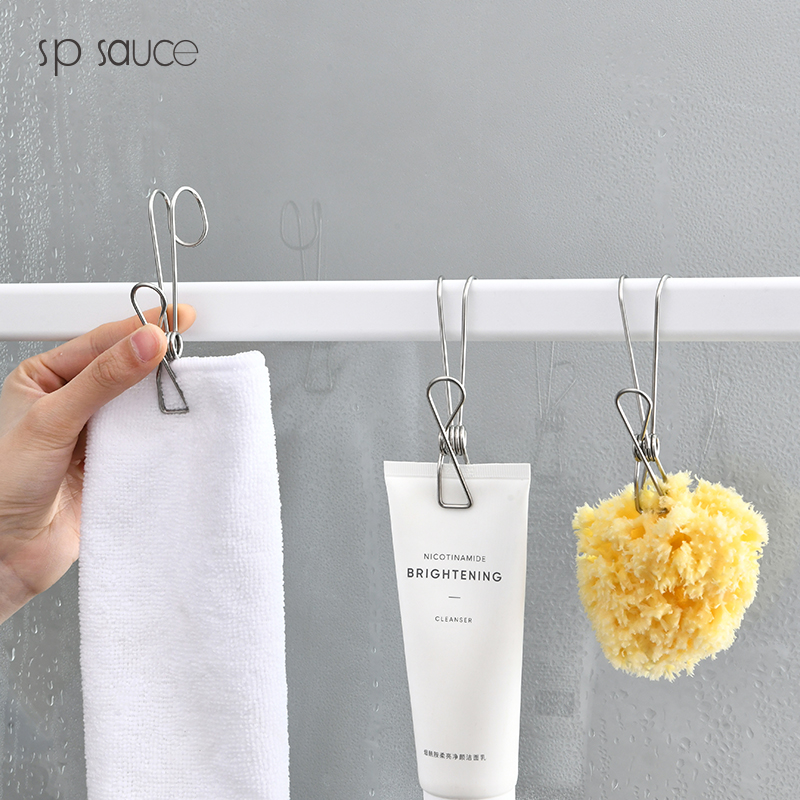 D 不锈钢挂钩夹(4枚入) 不锈钢挂钩夹子家用晾衣服被子防风夹衣架便携挂钩4个装