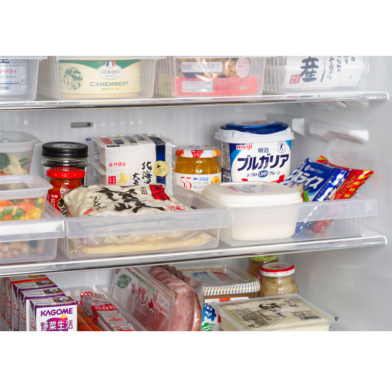 易于拉出,带手柄。可收纳不同尺寸的食物,合理利用冰箱内部空间。