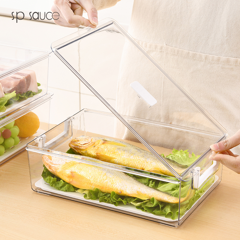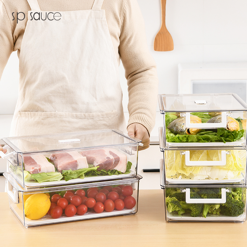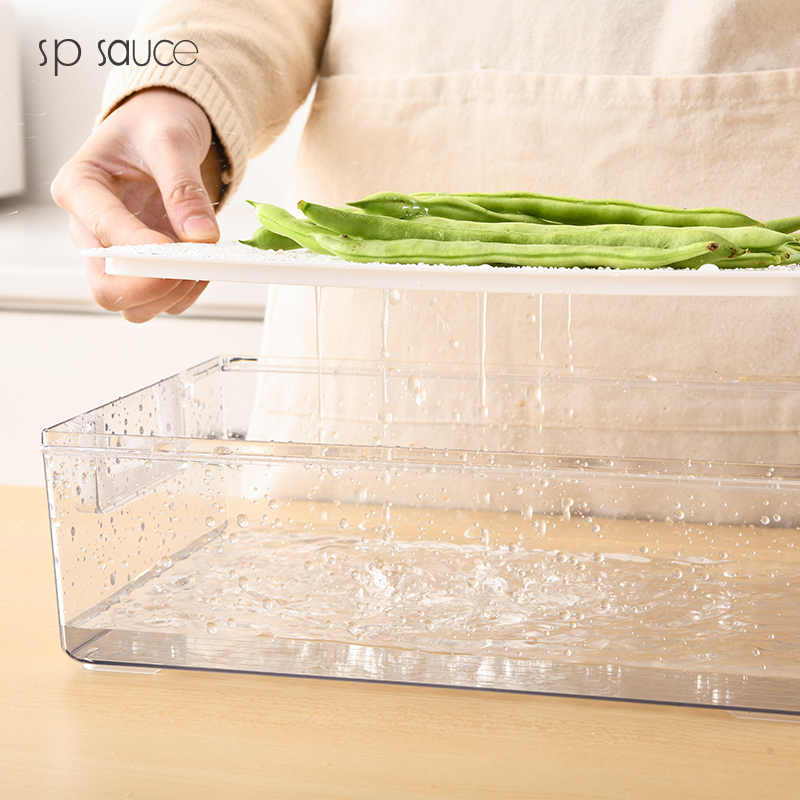 D -PET单层多功能收纳盒 透明冰箱保鲜盒食物收纳盒蔬菜水果冷藏储物单层多功能沥水保鲜盒