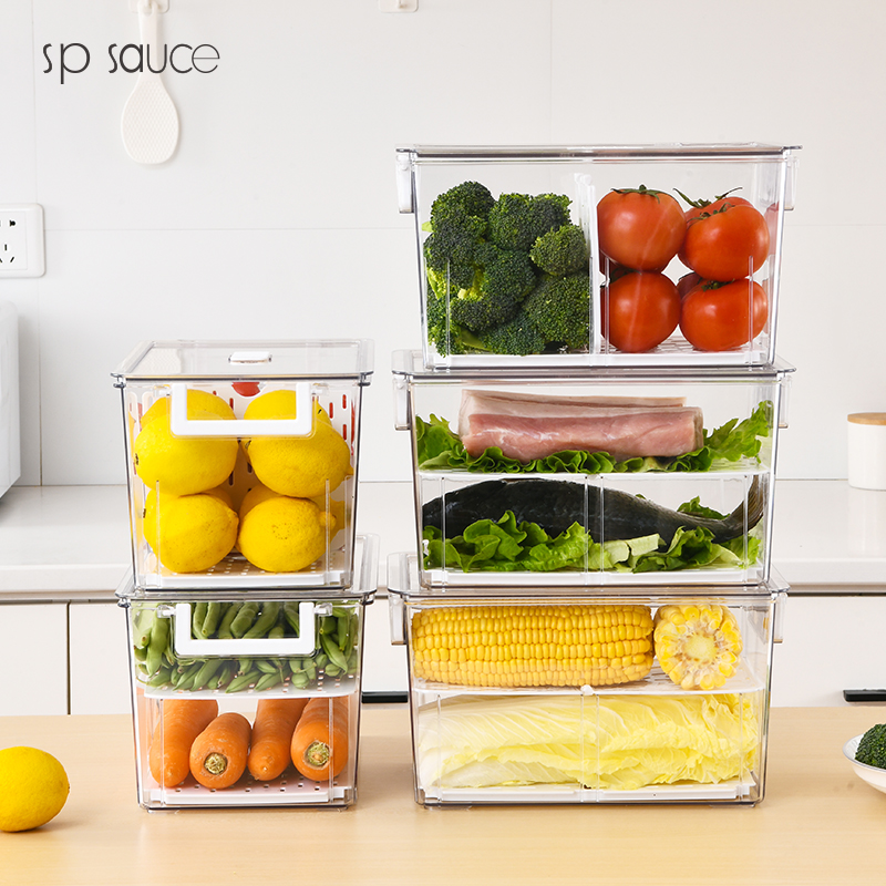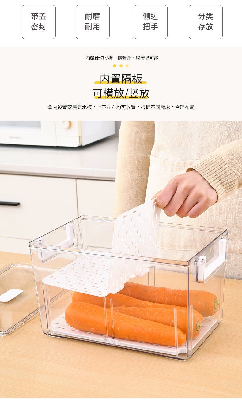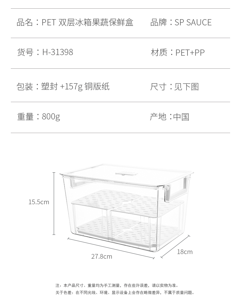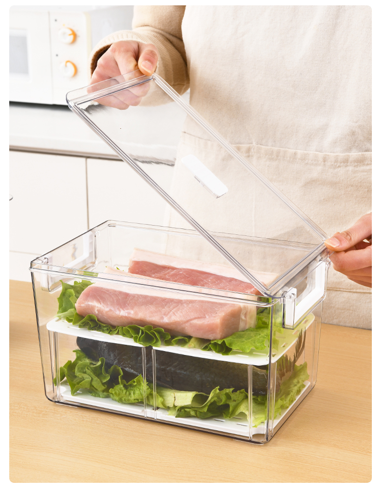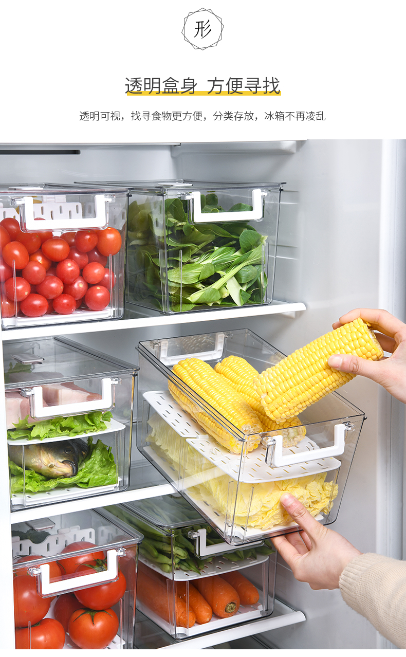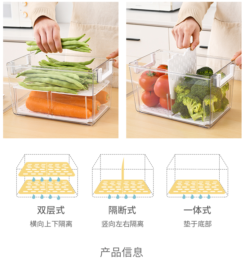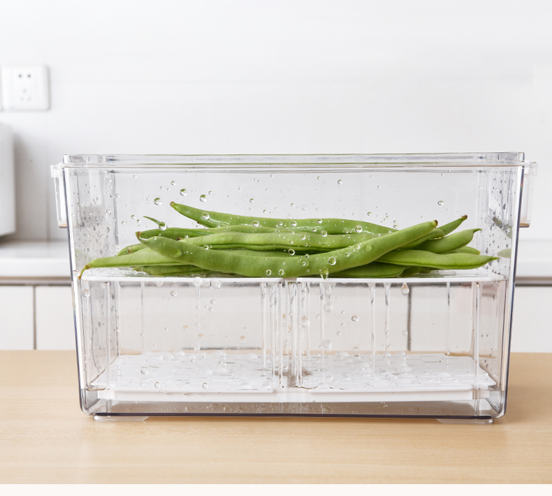 D - PET双层冰箱果蔬保鲜盒 透明塑料冰箱保鲜盒食物收纳盒蔬菜水果冷藏储物双层沥水盒