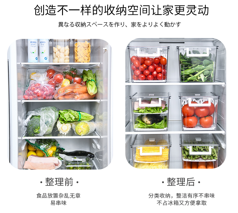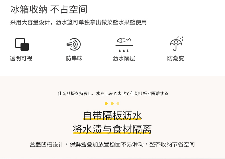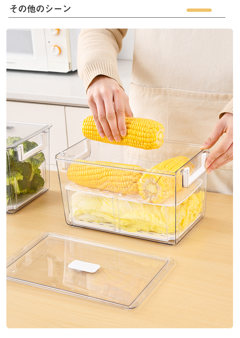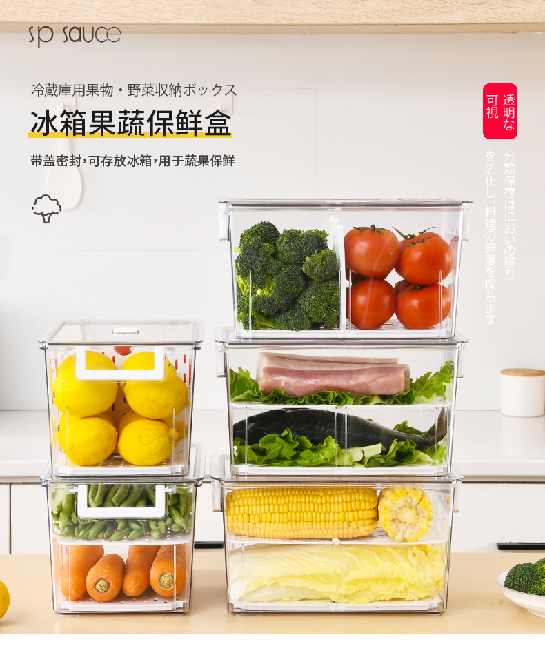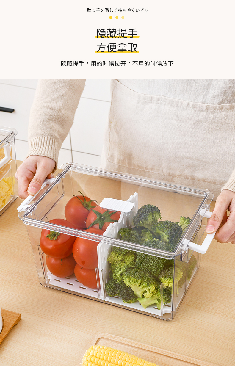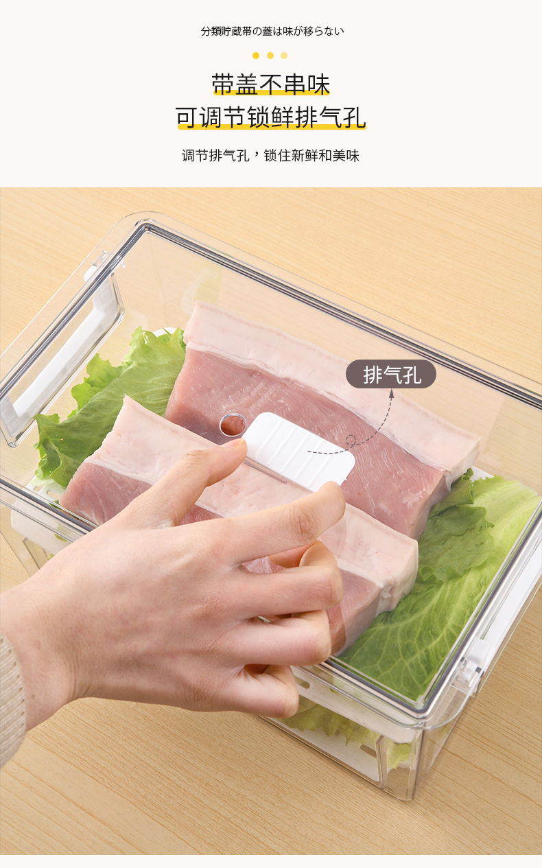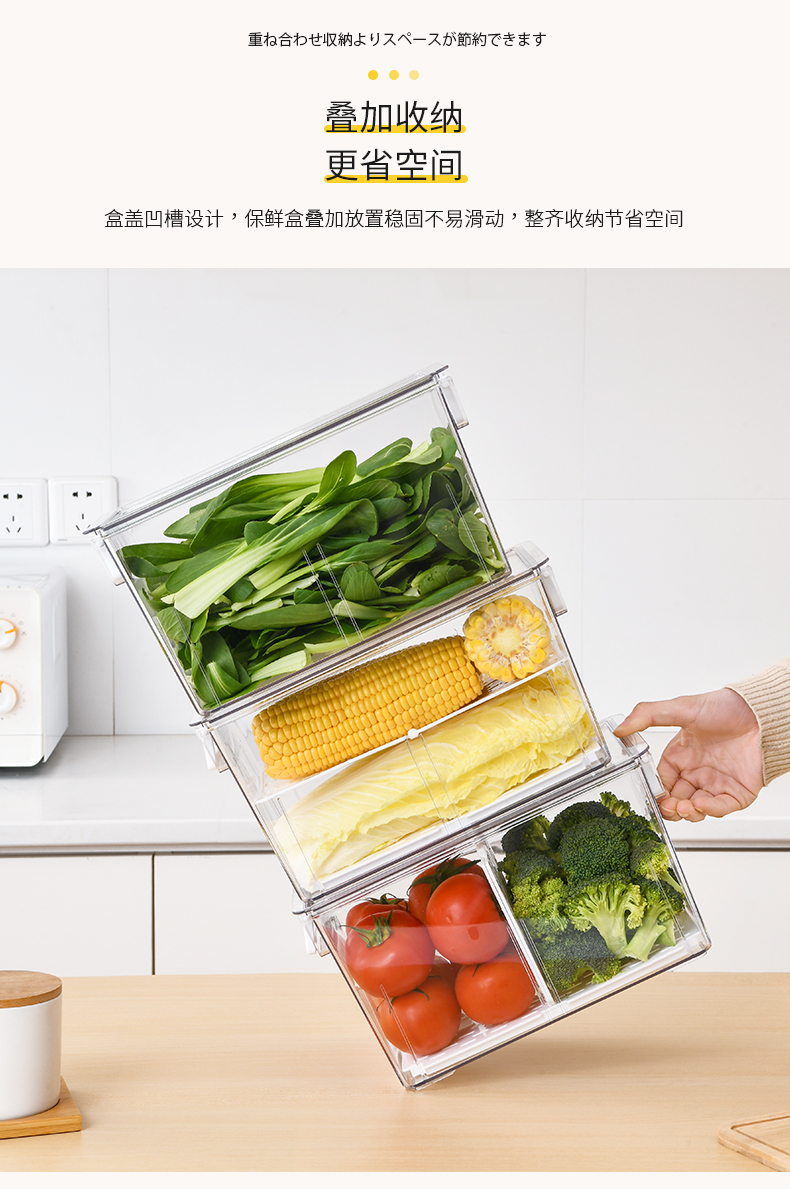 D - PET双层冰箱果蔬保鲜盒 透明塑料冰箱保鲜盒食物收纳盒蔬菜水果冷藏储物双层沥水盒