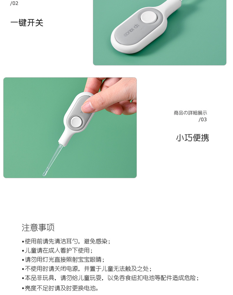 D 发光耳勺 挖耳勺掏耳朵成人婴儿童发光掏耳勺扣耳勺耳朵清洁器挖耳朵采耳工具