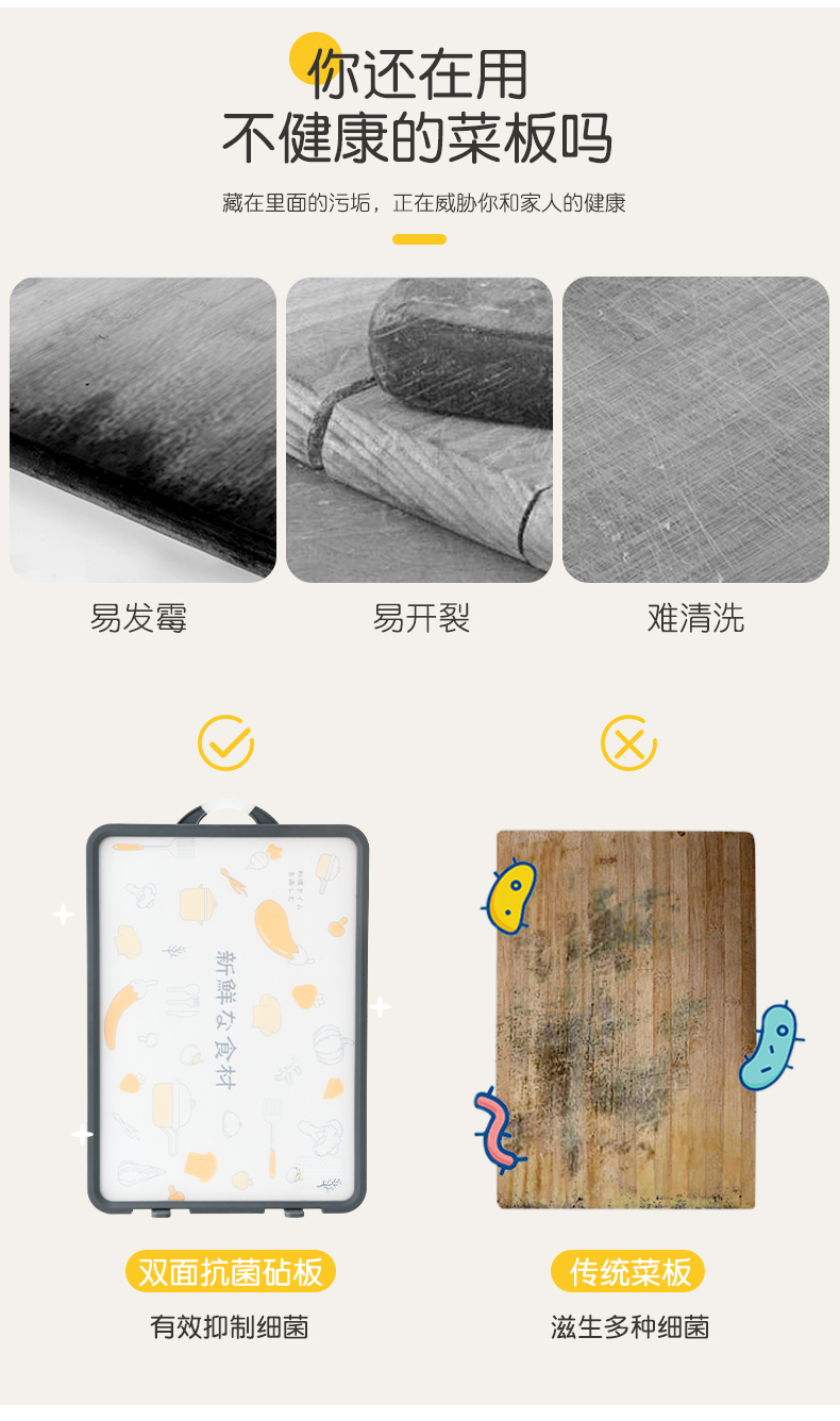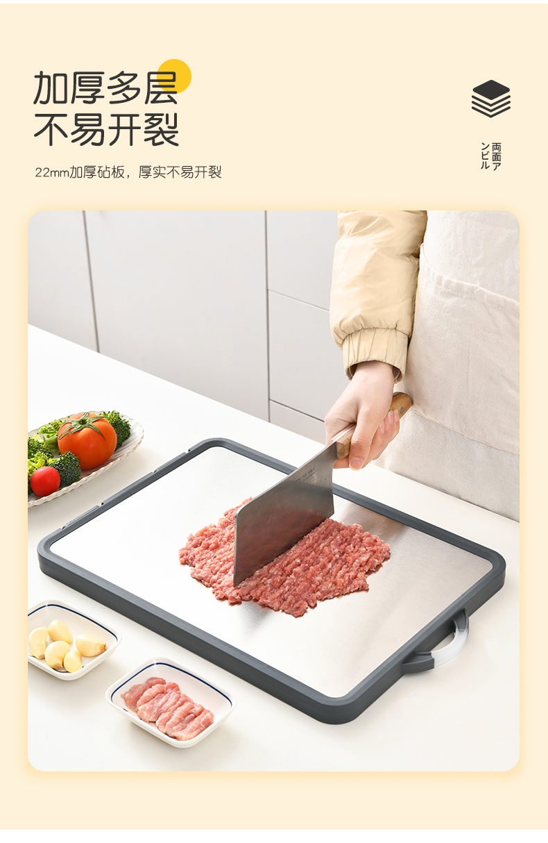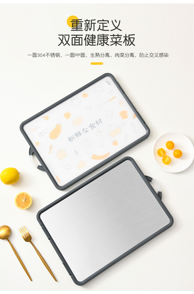 D 双面不锈钢砧板 砧板菜板案板双面不锈钢塑料两用砧板加厚防霉切菜板水果板