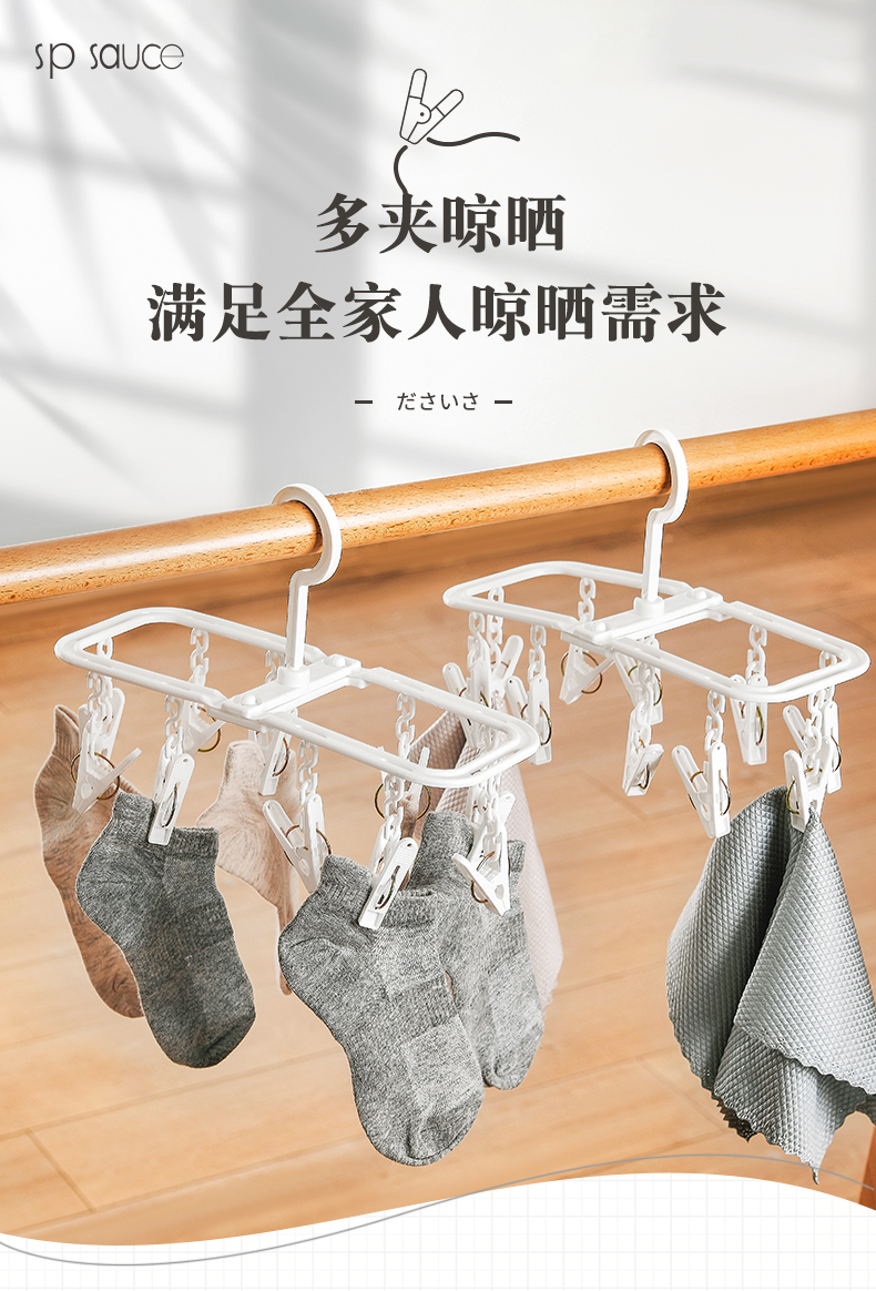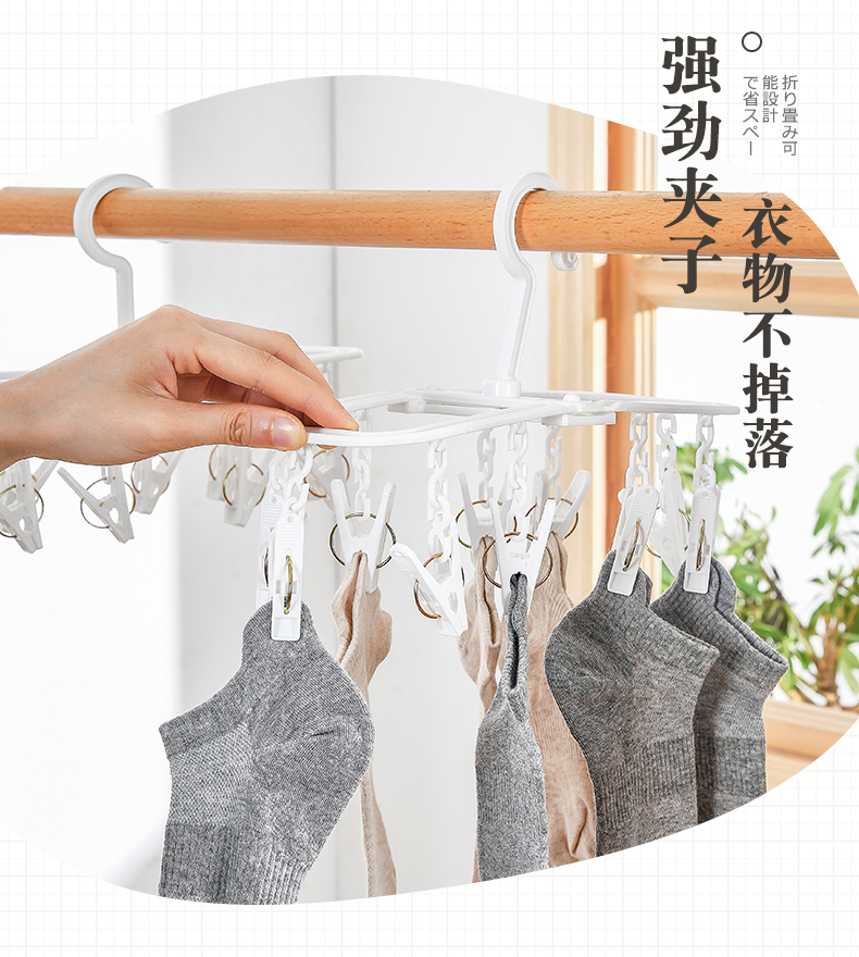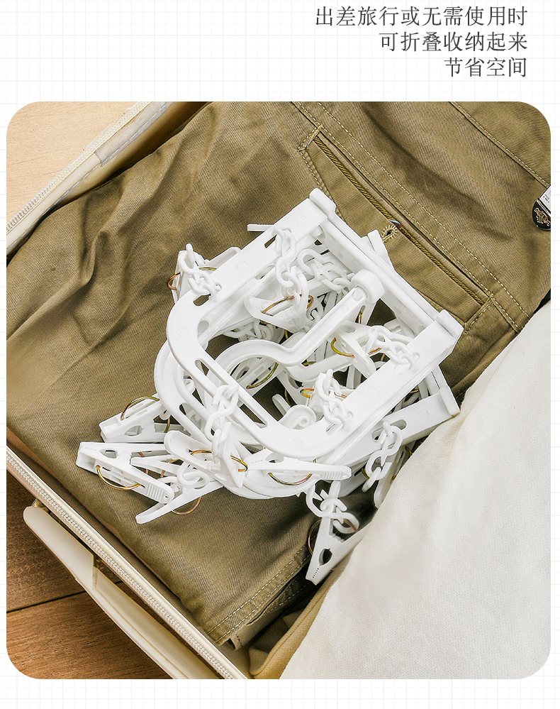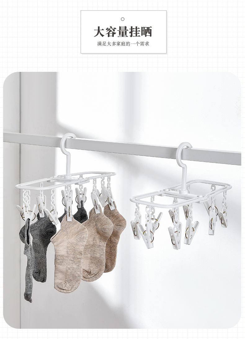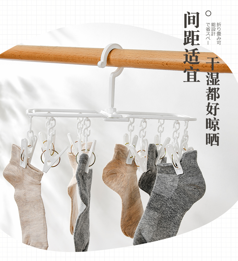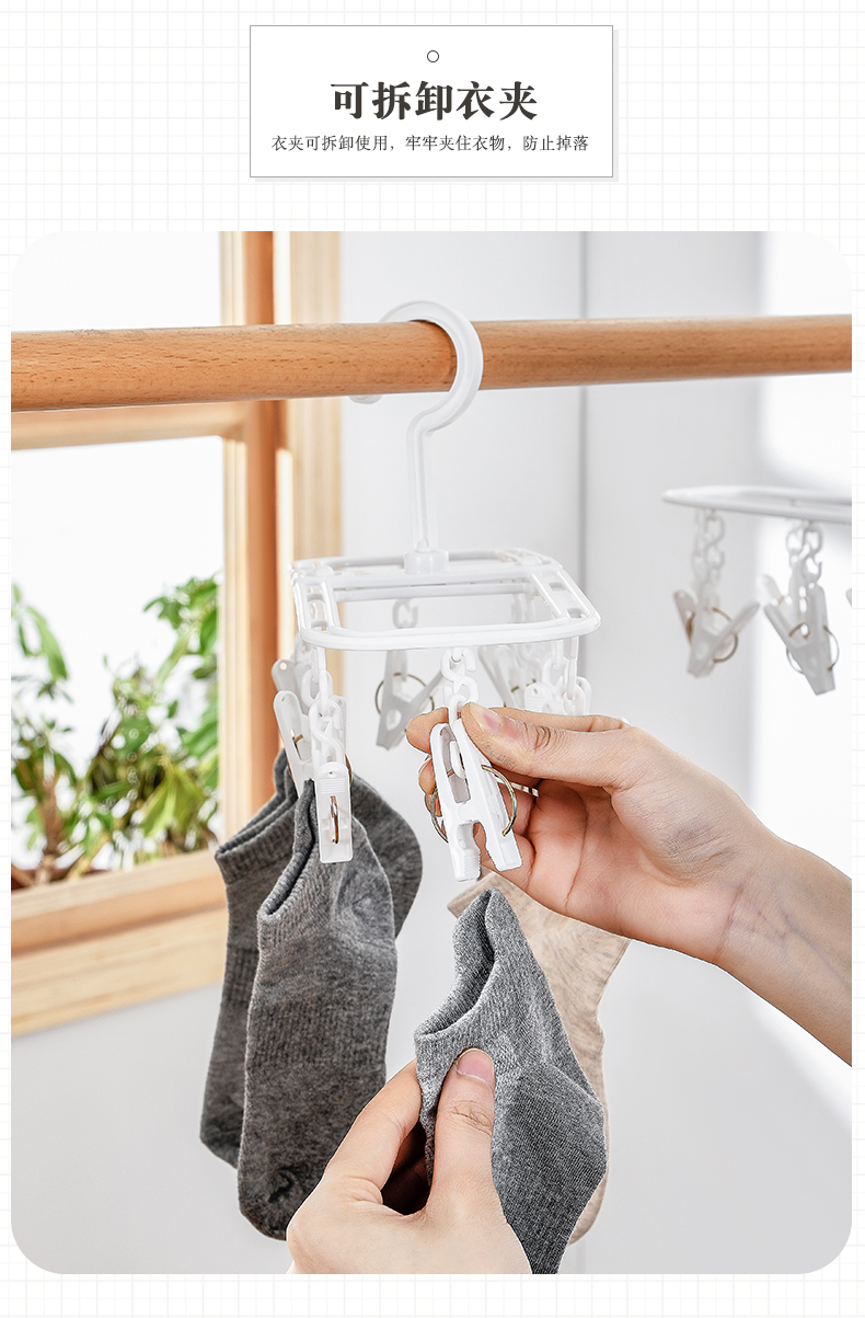 D便携旅行装晾晒架 360度旋转晾衣架多夹子多功能塑料折叠衣架防风袜子架子