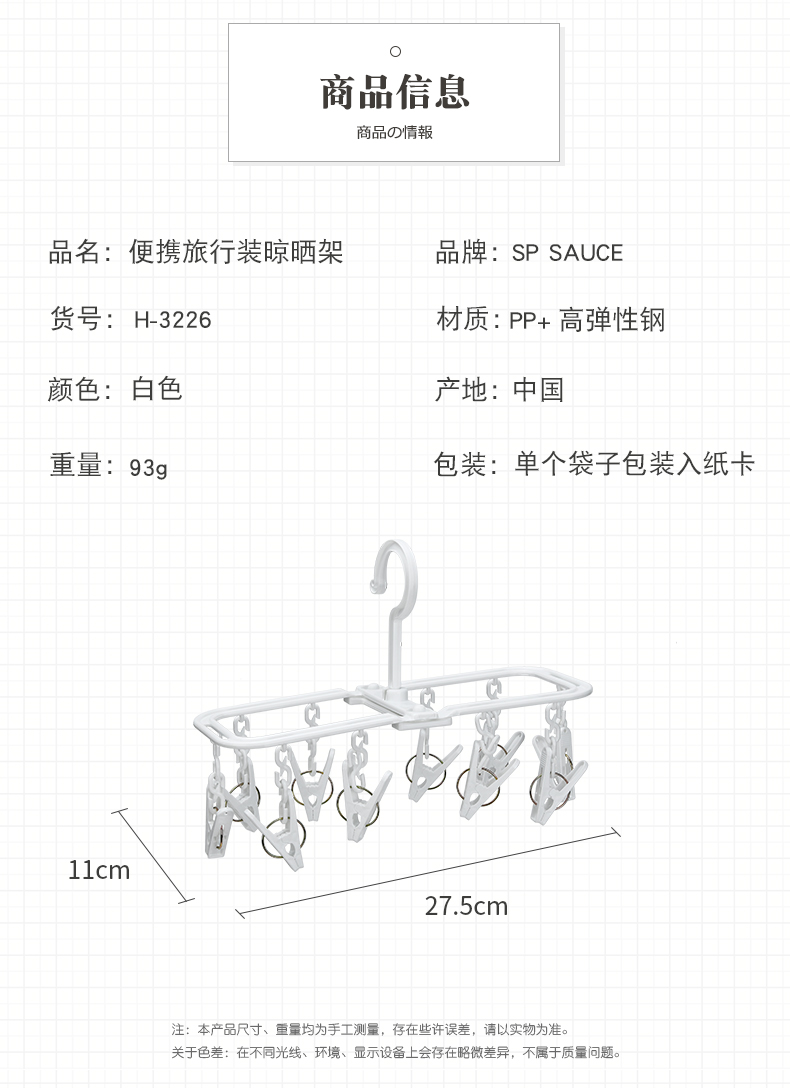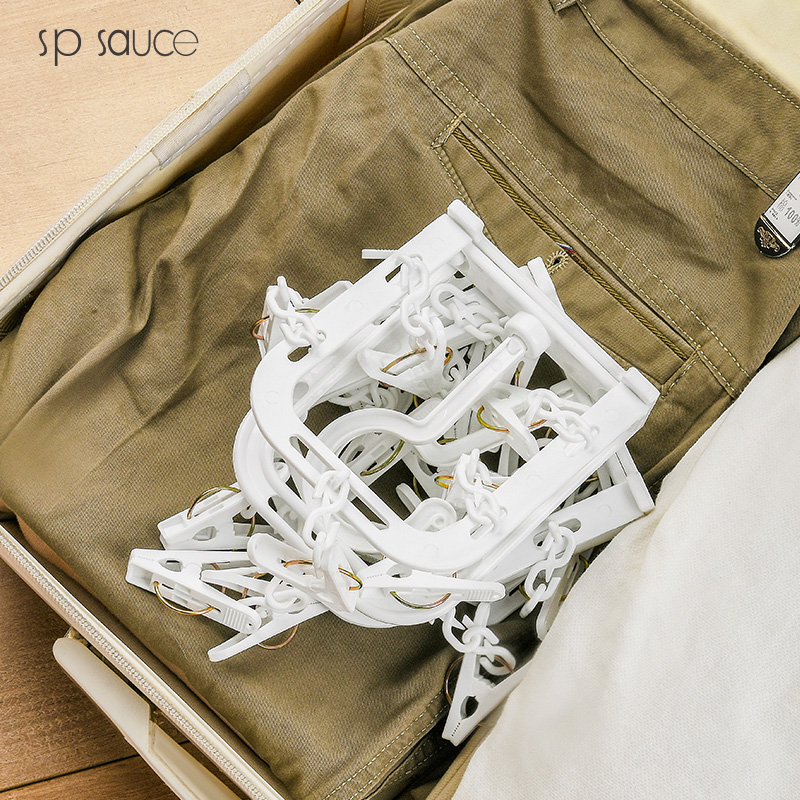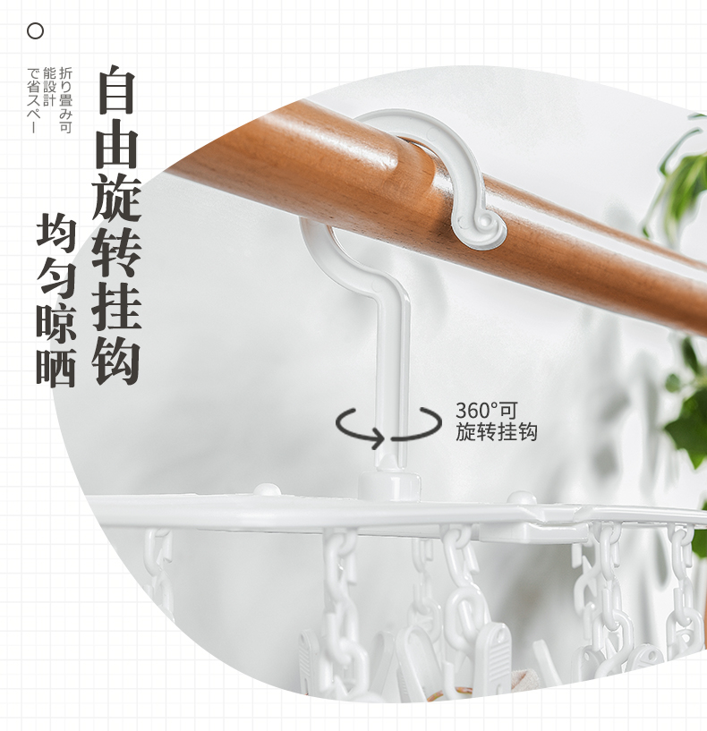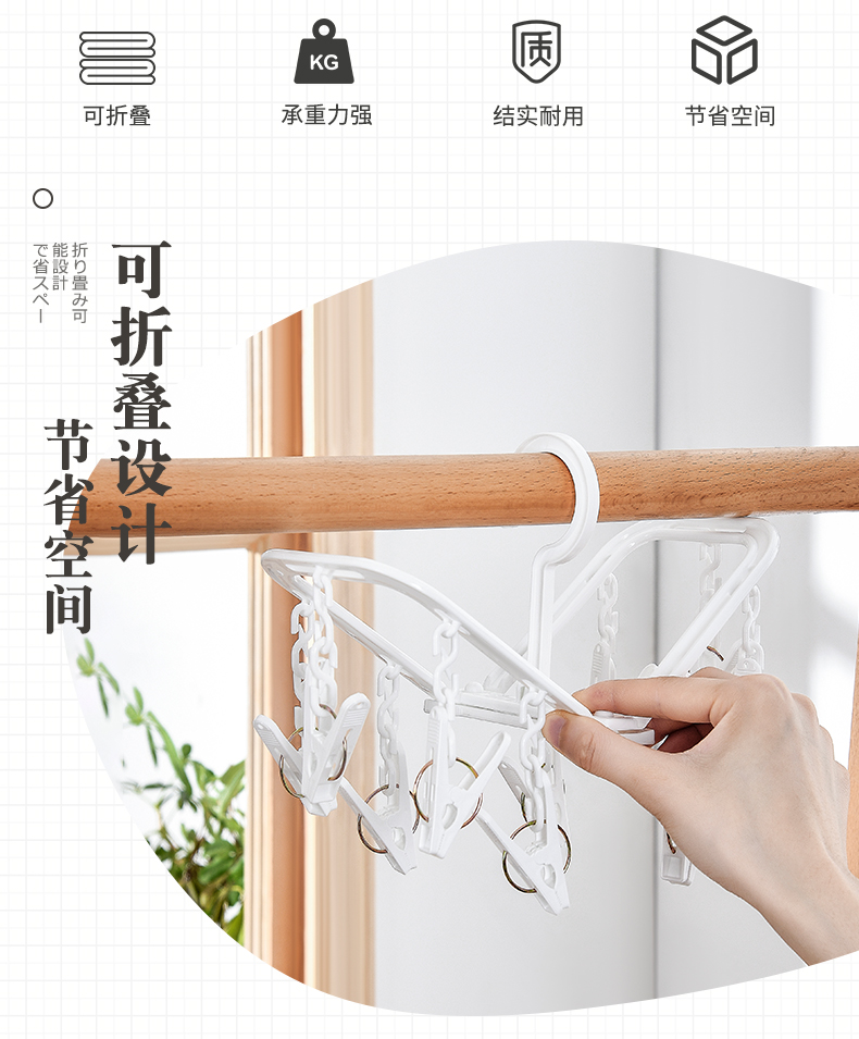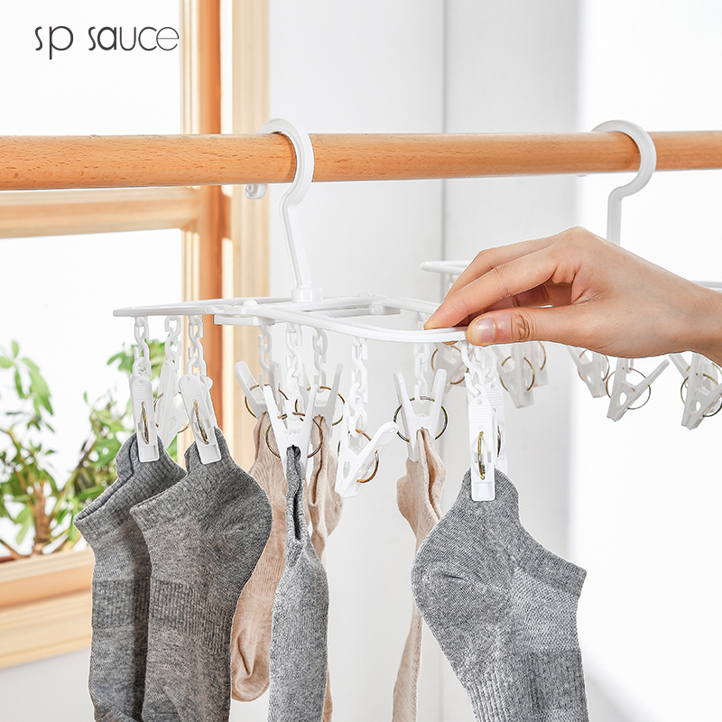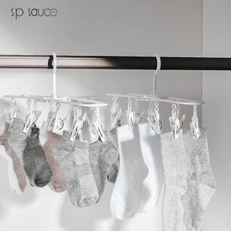 D便携旅行装晾晒架 360度旋转晾衣架多夹子多功能塑料折叠衣架防风袜子架子