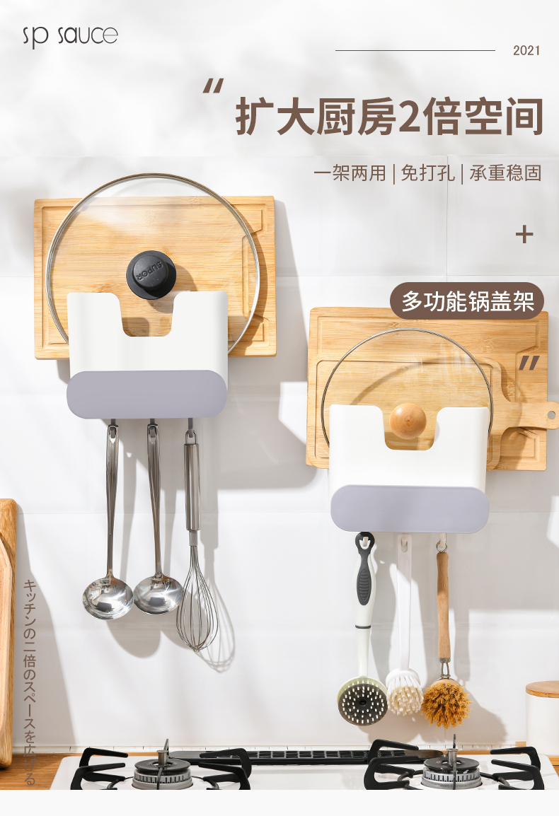 D 多功能锅盖架 家用锅盖架壁挂免打孔菜板砧板架坐式厨房收纳置物架