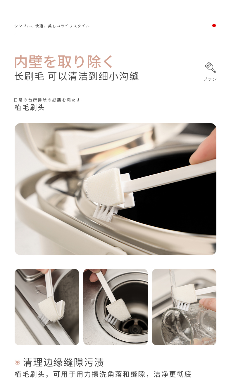 D 窄缝清洁刷(2支装) 卫浴厨房沟槽缝隙刷杯盖沟槽去死角家用清洁刷子