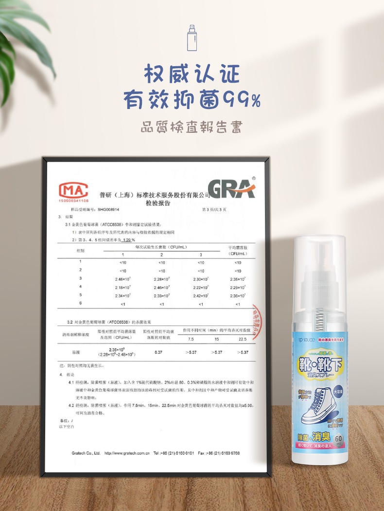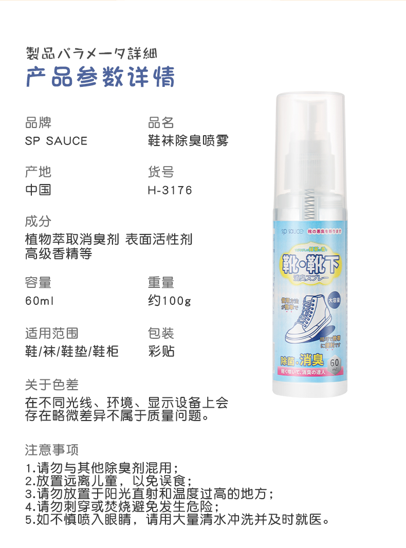 D 鞋袜除臭喷雾 60ml 去异味除菌消臭喷剂鞋袜防臭鞋子运动鞋用除臭剂喷雾