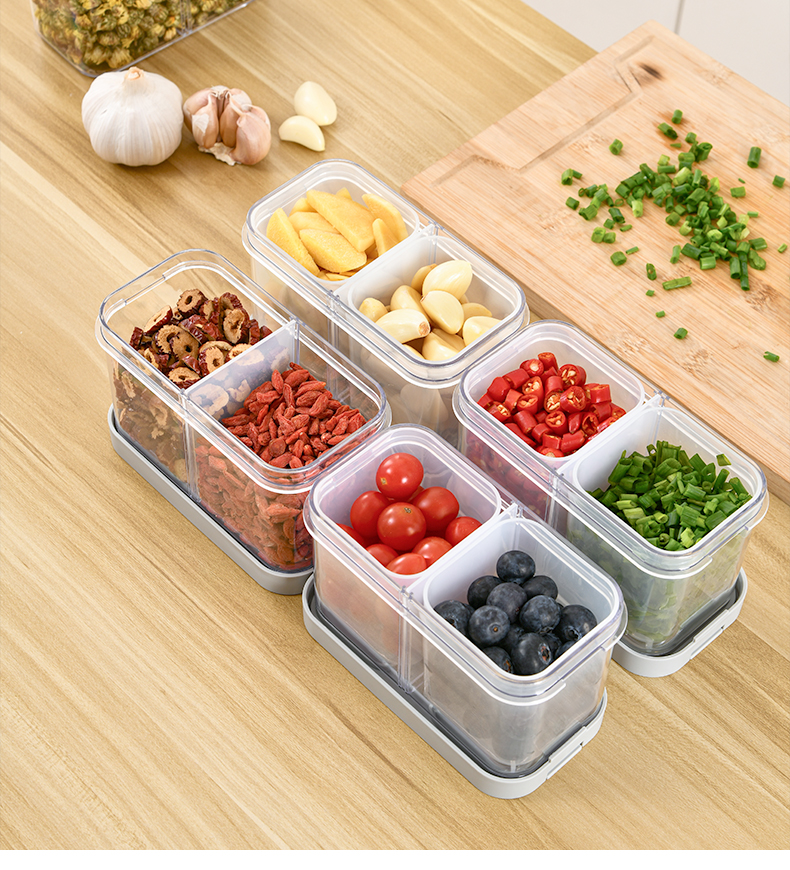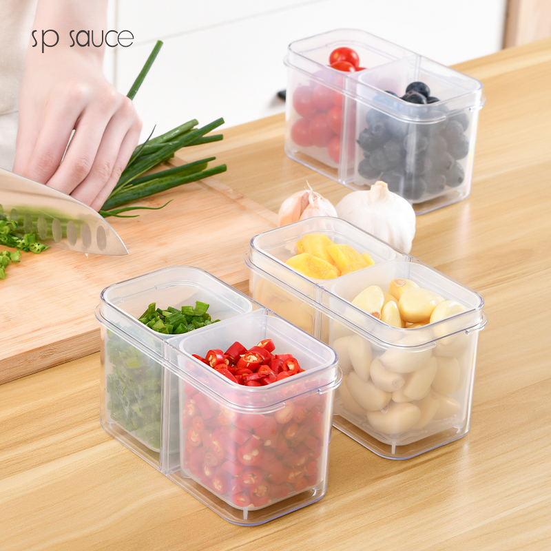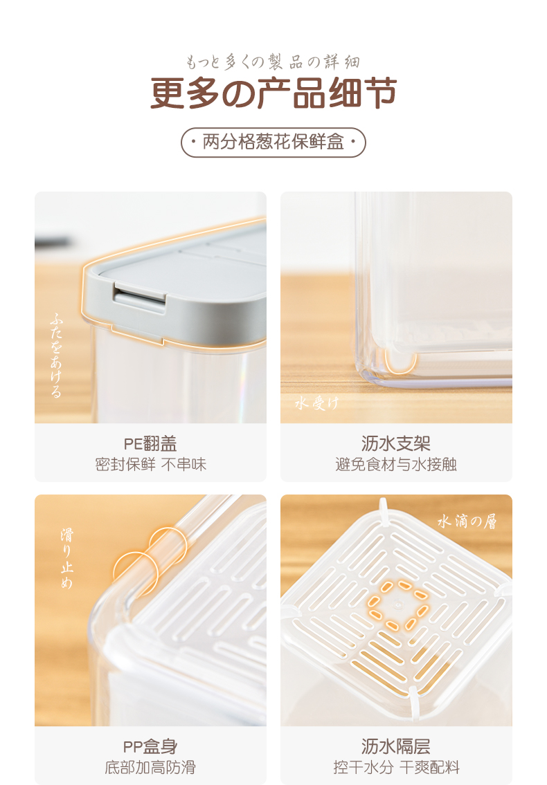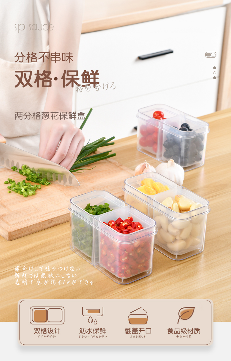 两分格葱花保鲜盒 分格葱花保鲜盒厨房冰箱专用水果沥水盒葱姜蒜保鲜盒