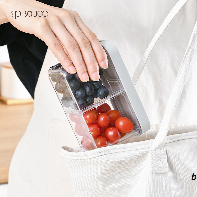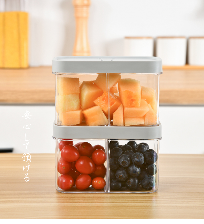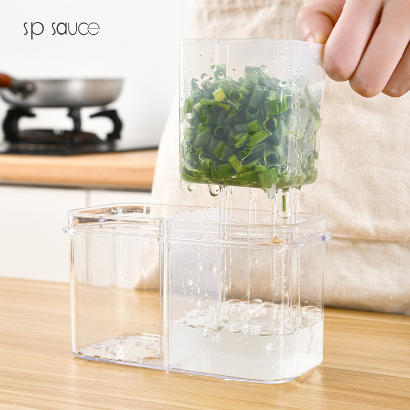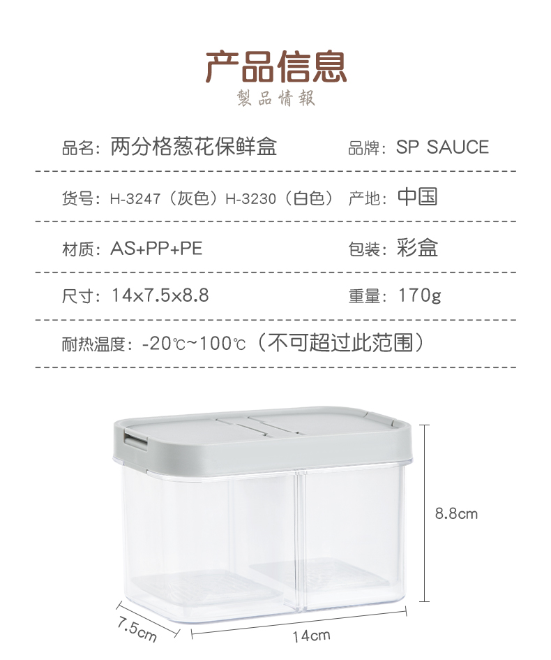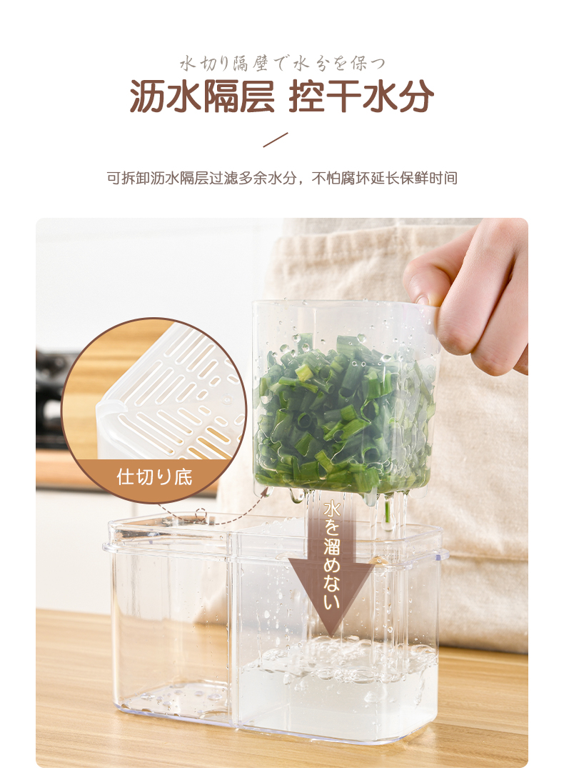 两分格葱花保鲜盒 分格葱花保鲜盒厨房冰箱专用水果沥水盒葱姜蒜保鲜盒