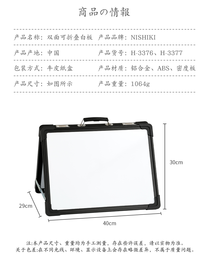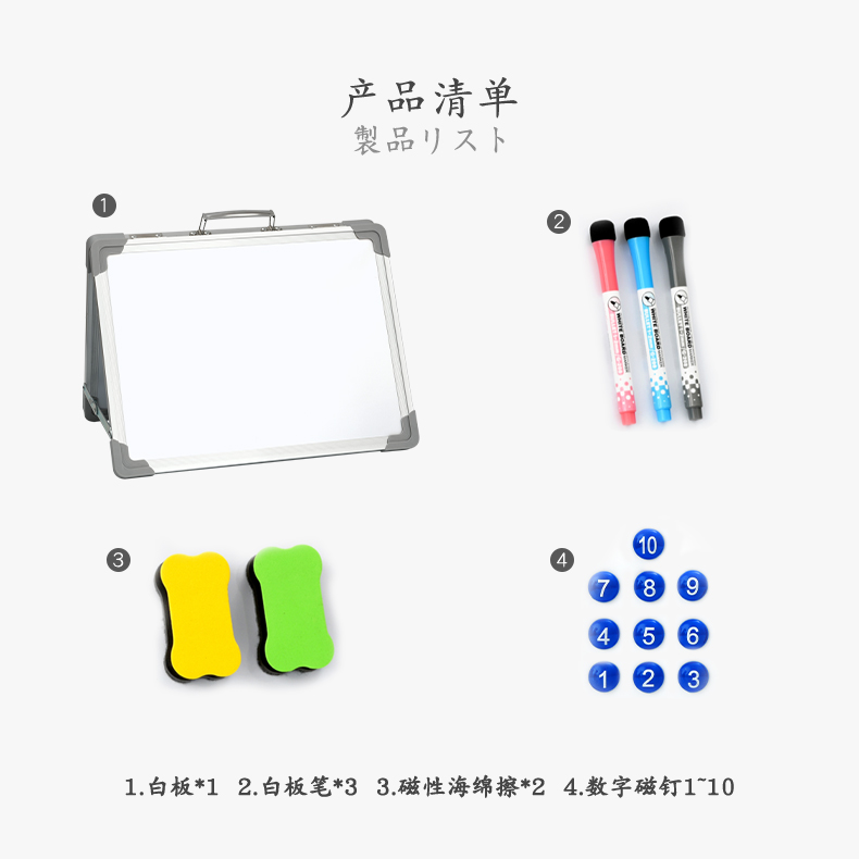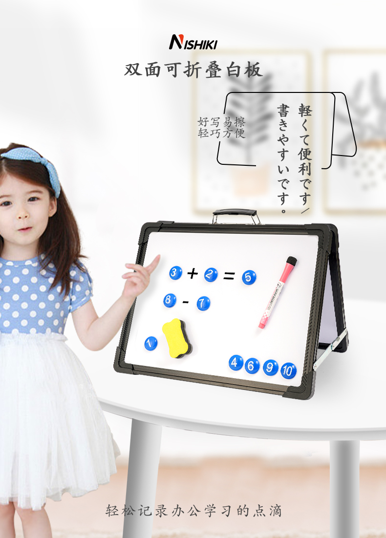 D- Y 双面可折叠白板(白框) 桌面小白板支架式带脚架黑板可折叠便携单双面磁性写字板儿童迷你画板