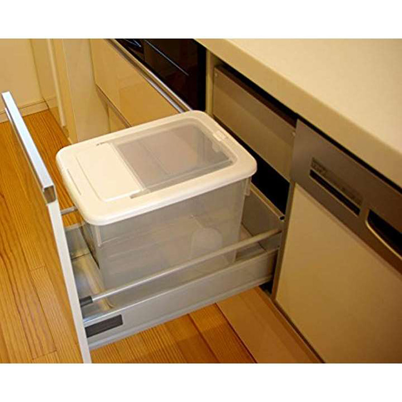 一只手就能轻松开关的米箱。 可以置于厨房的抽屉,水槽下面等地方。 |