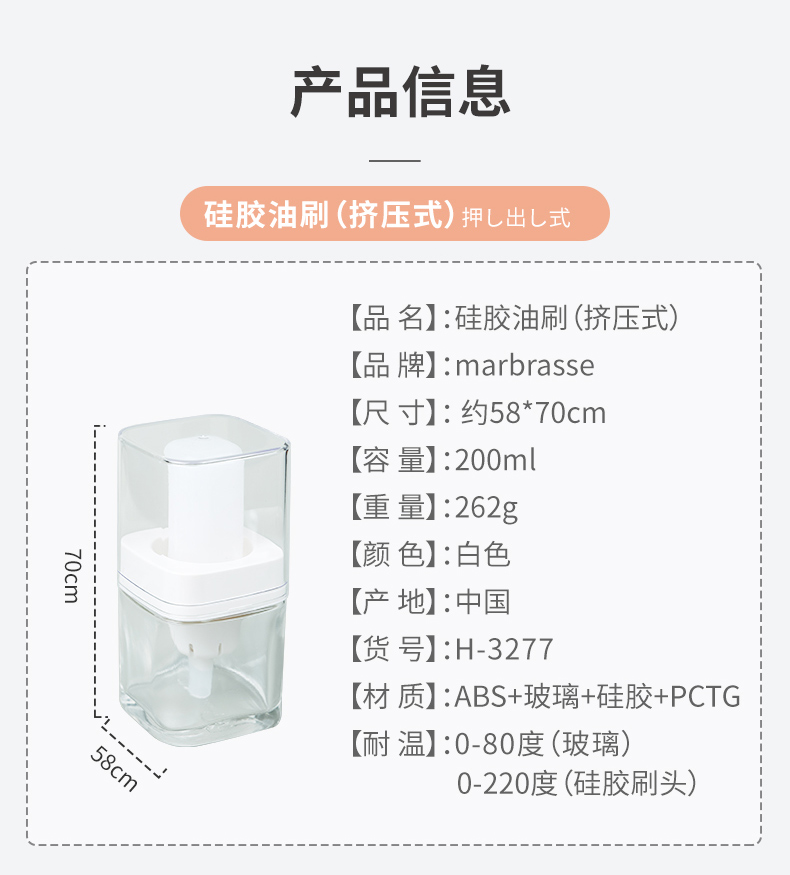 D 硅胶油刷(按压式) 家用刷油饼刷子厨房刷油刷硅胶油刷瓶烙饼刷不掉毛烘焙烧烤刷